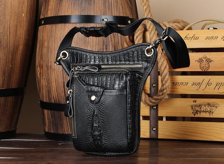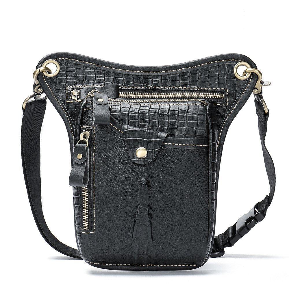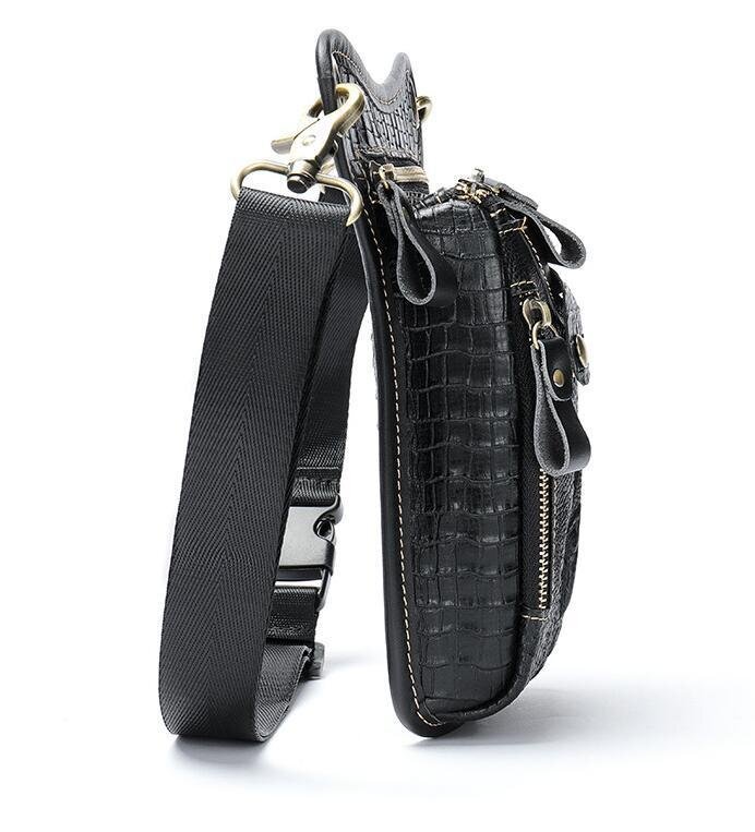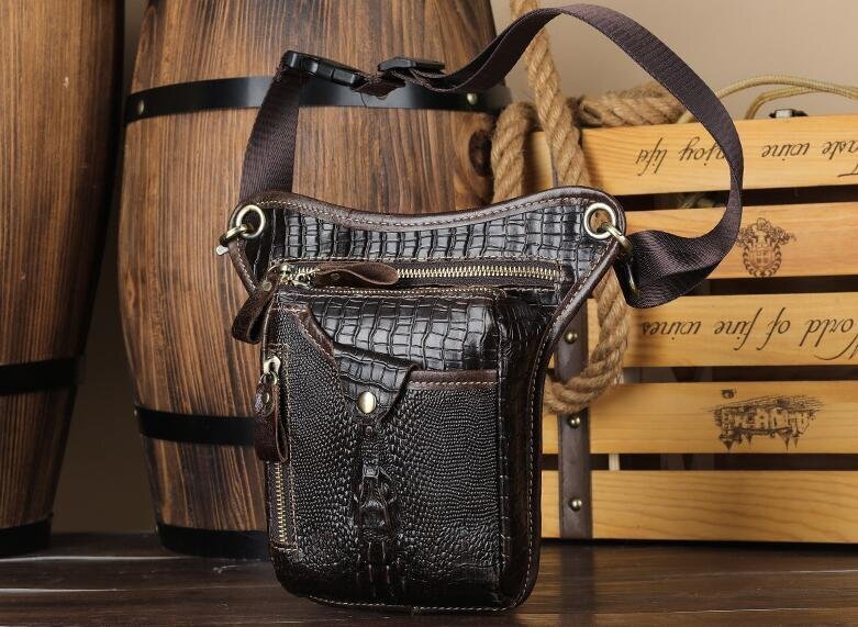 クロコダイル型押し ウエストバッグ メンズ 本革 2WAY ベルトポーチ スマホポーチ ミニショルダーバッグ 牛革  コーヒー
