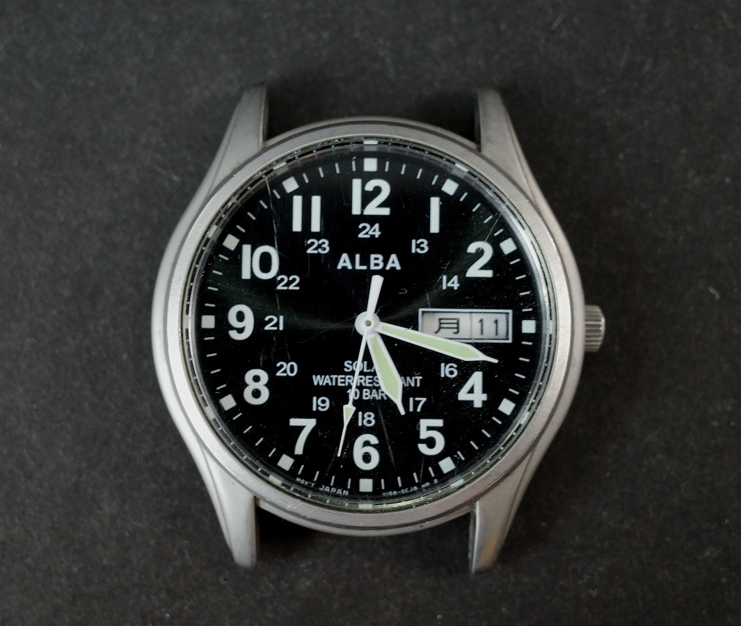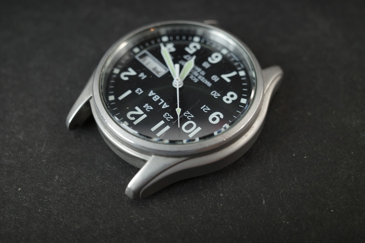 SEIKO セイコー ALBA アルバ V158-0AX0 ソーラー デイデイト メンズ腕時計 黒文字盤 ケースのみ