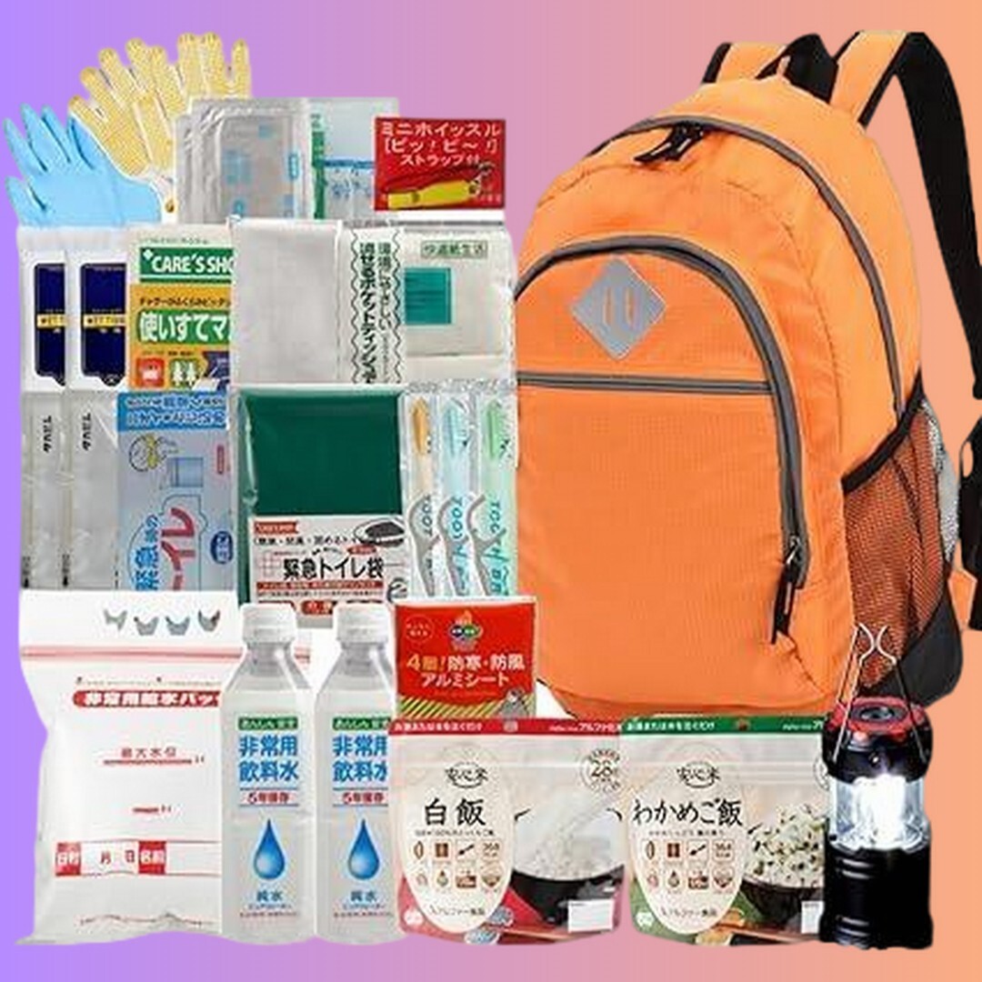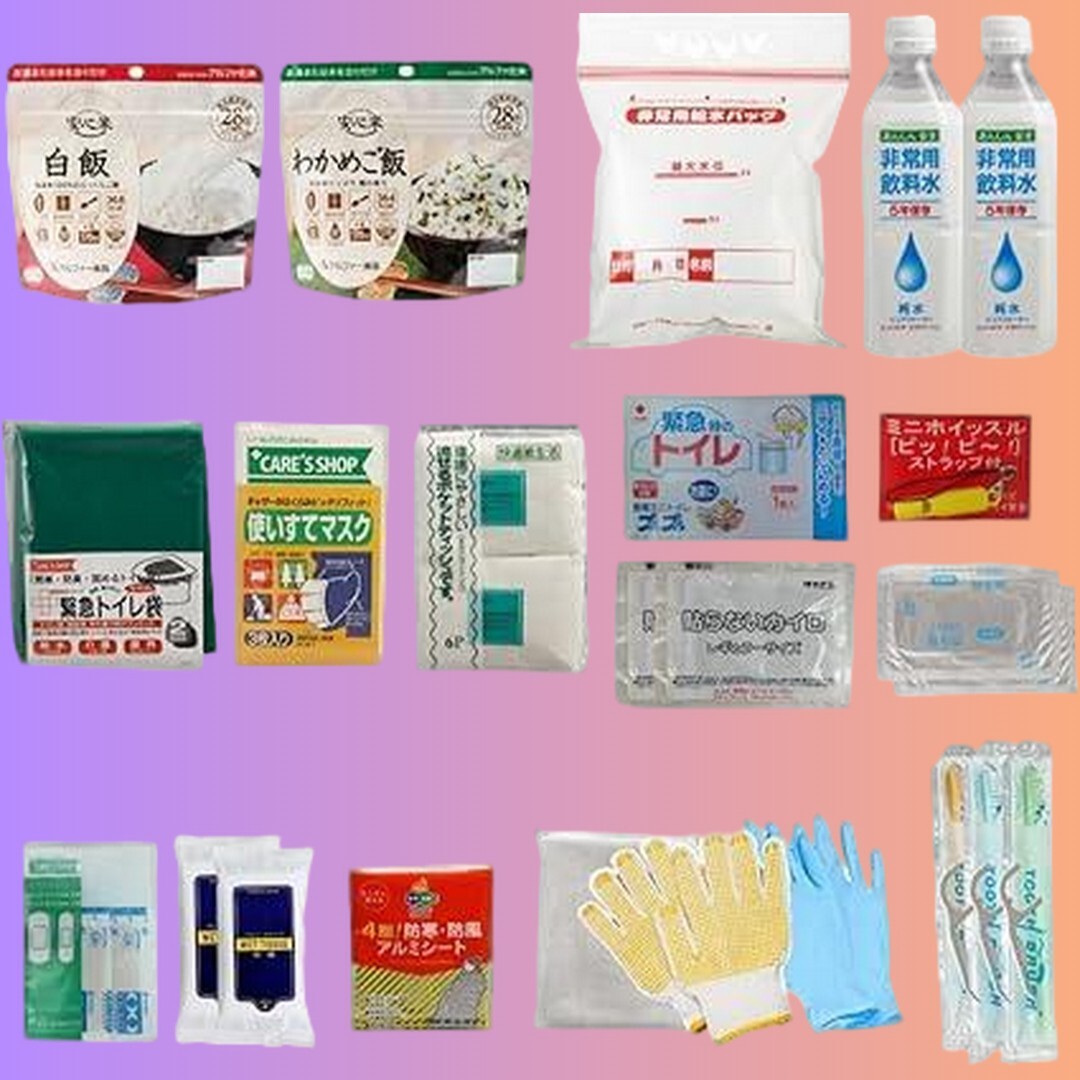 こちらの防災セットは、災害時に必要な基本アイテムを一通り揃え、