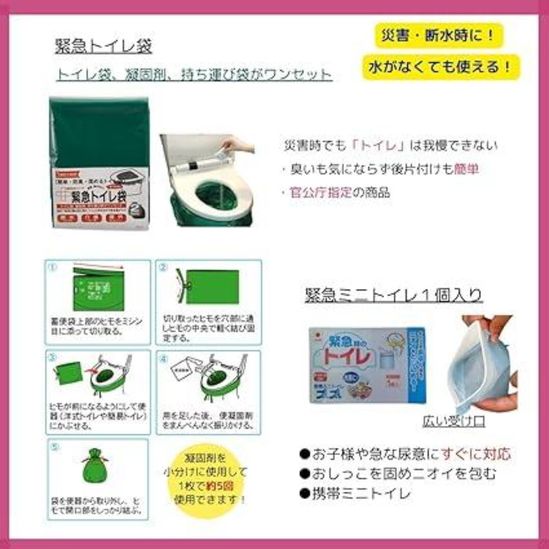 大小兼用トイレセットと尿専用袋、密封可能で匂いを封じる設計。