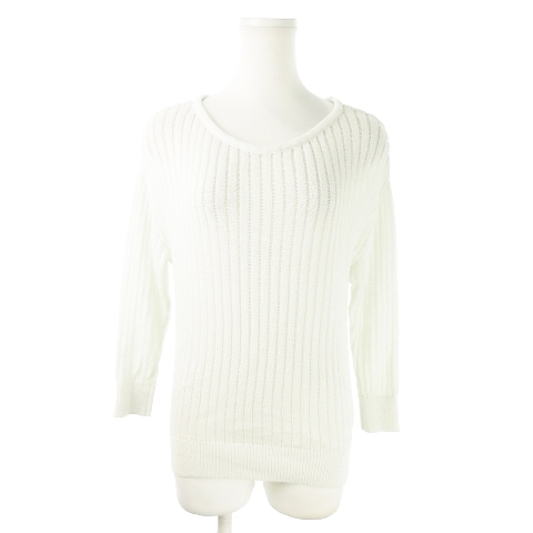 アンタイトル UNTITLED ニット セーター ラウンドネック 七分袖 ストレッチ 透け感 ラメ 2 ライトグレー /AO11 レディース