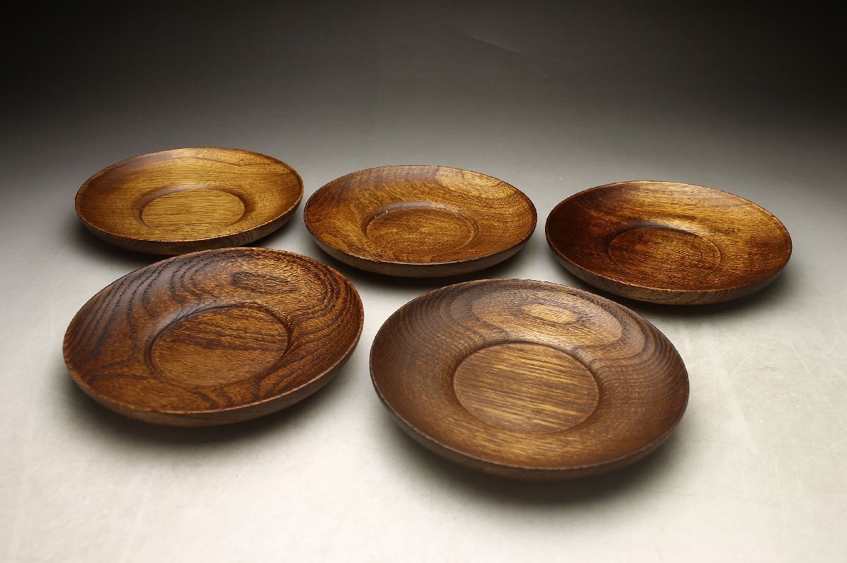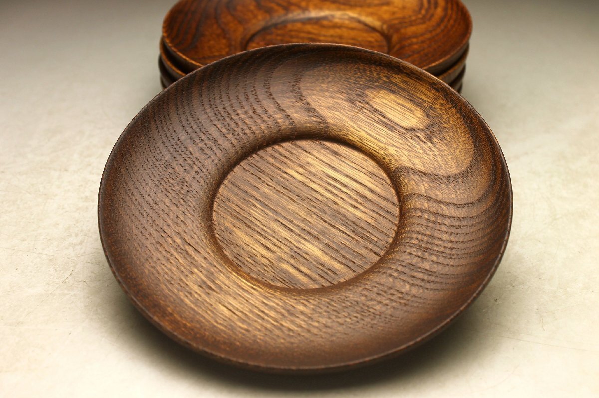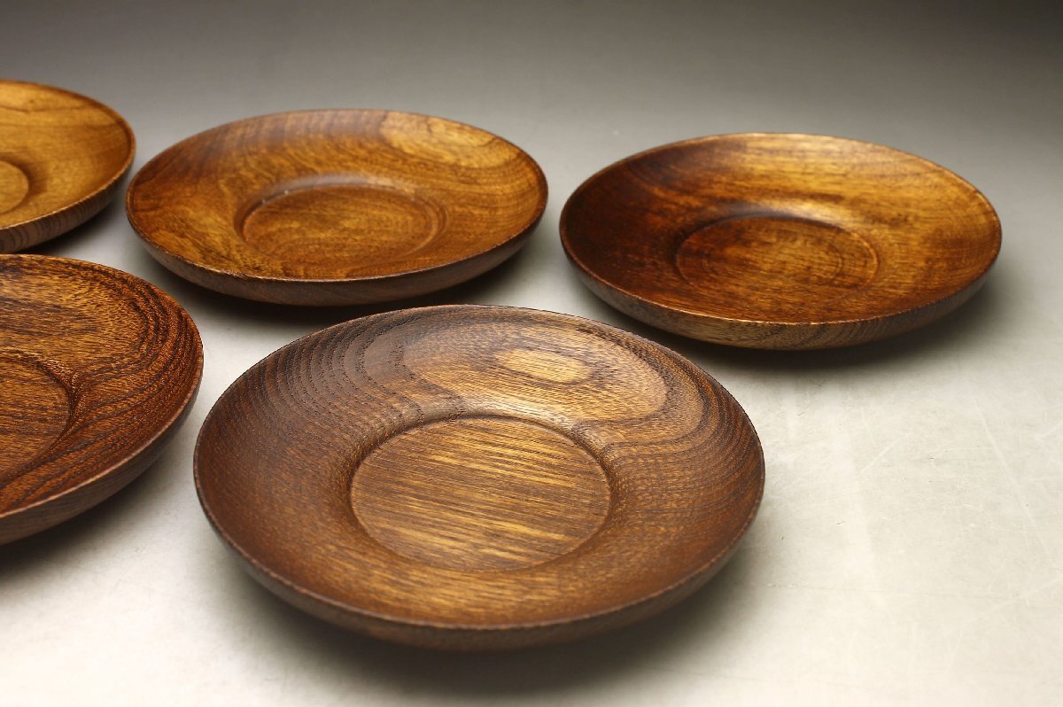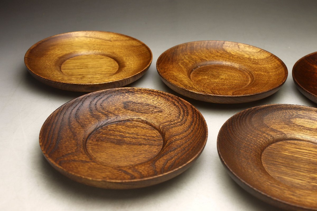 【余韻】 天然木製 杢目 欅材 茶托揃(5枚)★煎茶 無傷美品 茶道具<同梱可>