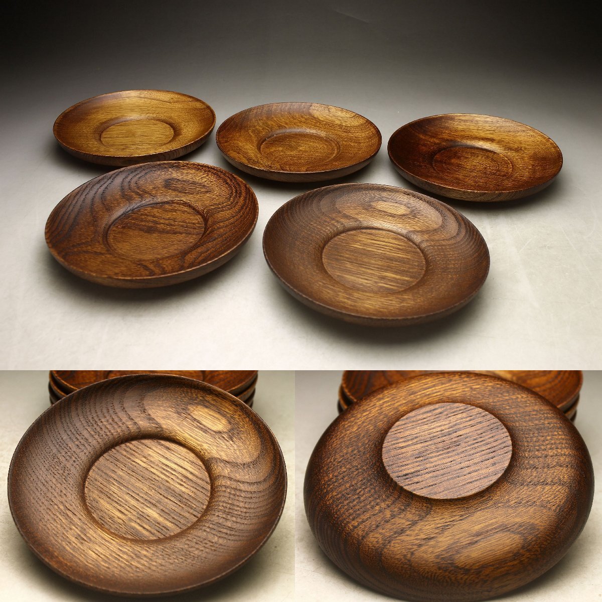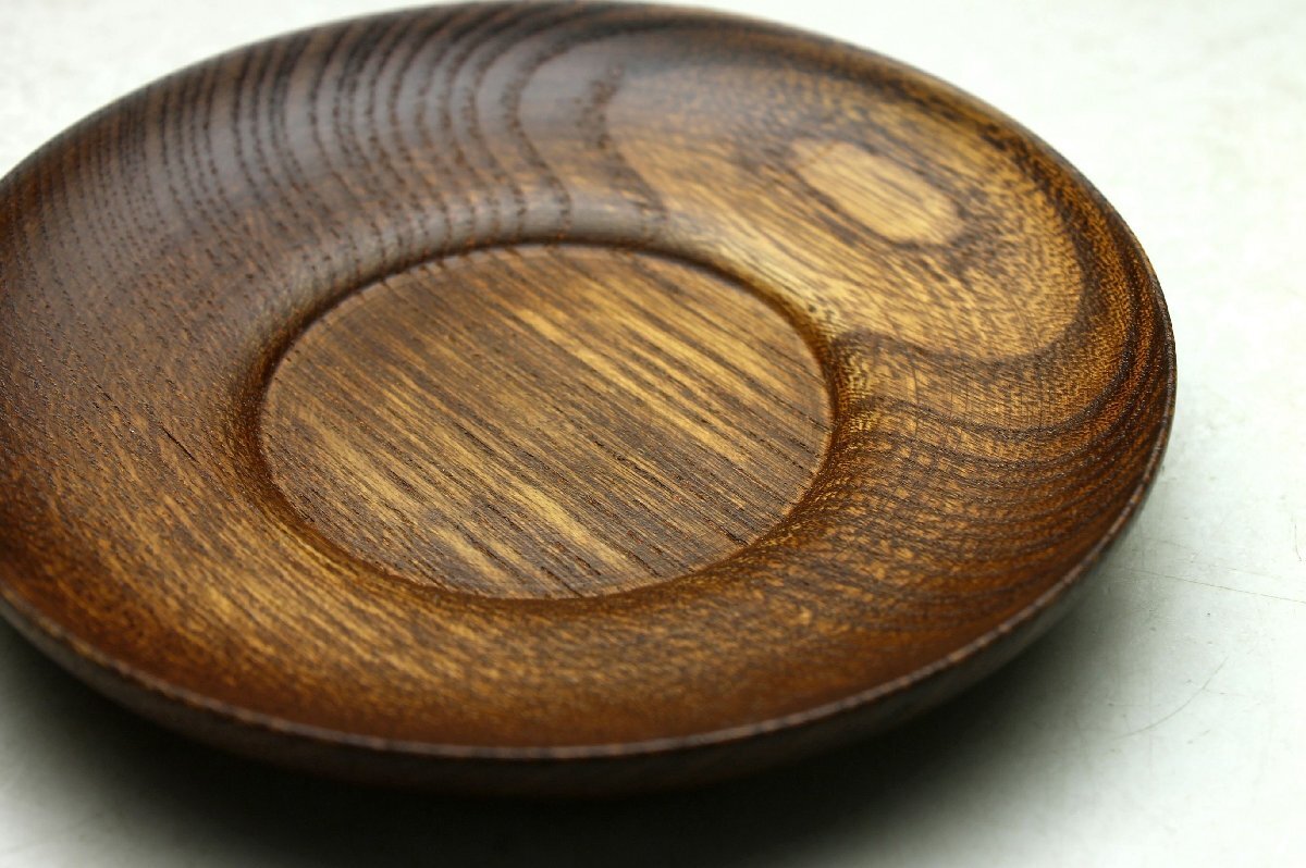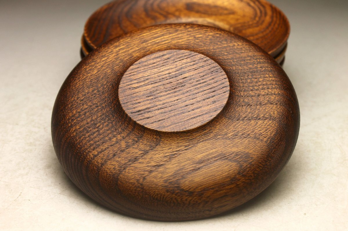 【余韻】 天然木製 杢目 欅材 茶托揃(5枚)★煎茶 無傷美品 茶道具<同梱可>