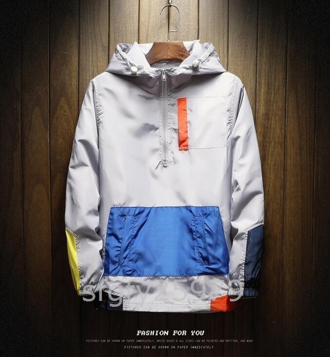 C699☆パーカー マウンテンパーカー メンズ ジャケット ウィンドブレーカー フード付き カジュアル 上着 アウター 配色 M-5XLグレー
