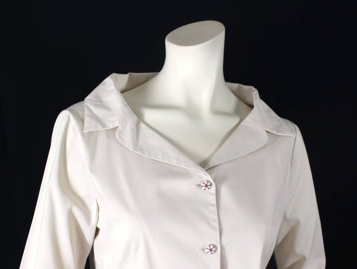 <平置き計測で,cm単位> 肩幅(両肩縫い目を直線で結んだ線)39  身幅(両脇を直線で結んだ線)48  着丈(襟下)48.5  袖丈(肩縫い目~袖先)41(写真のマネキンは 7号サイズです)