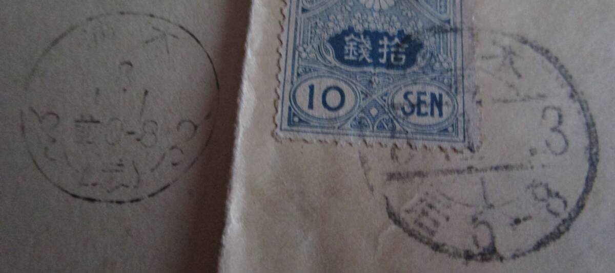 1、大正白紙3銭貼・櫛型印木浦(局)3・6・9消(画像3参照)→櫛型印香川・坂出3・6・11(画像4参照)×4印の着印。