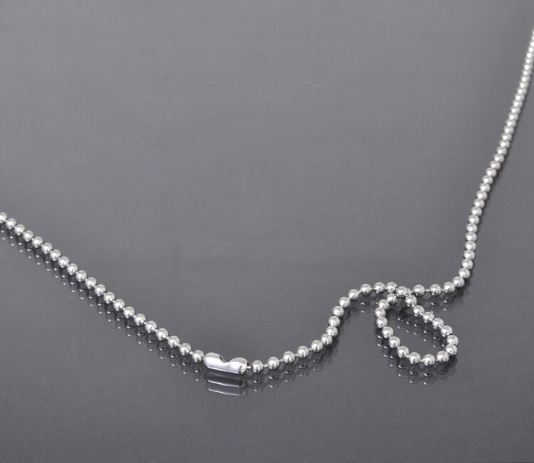| ボ-ルチェ-ンは、その名の通りボールをつないだチェーン。メンズ、レディース問わず、1本持っておくと便利な定番のネックレスです。こちらのチェーンの留め具はドッグタグでもお馴染みの筒状コネクタータイプなのでシンプル丈夫で壊れにくい、ペンダントに通し易い、ニッパーなどで切って長さの調整が出来るなど使い勝手がとても良い事が特徴です。 ※こちらのチェーンは絡まりにくく万が一絡まってしまったとしても解きやすいデザインです。 |