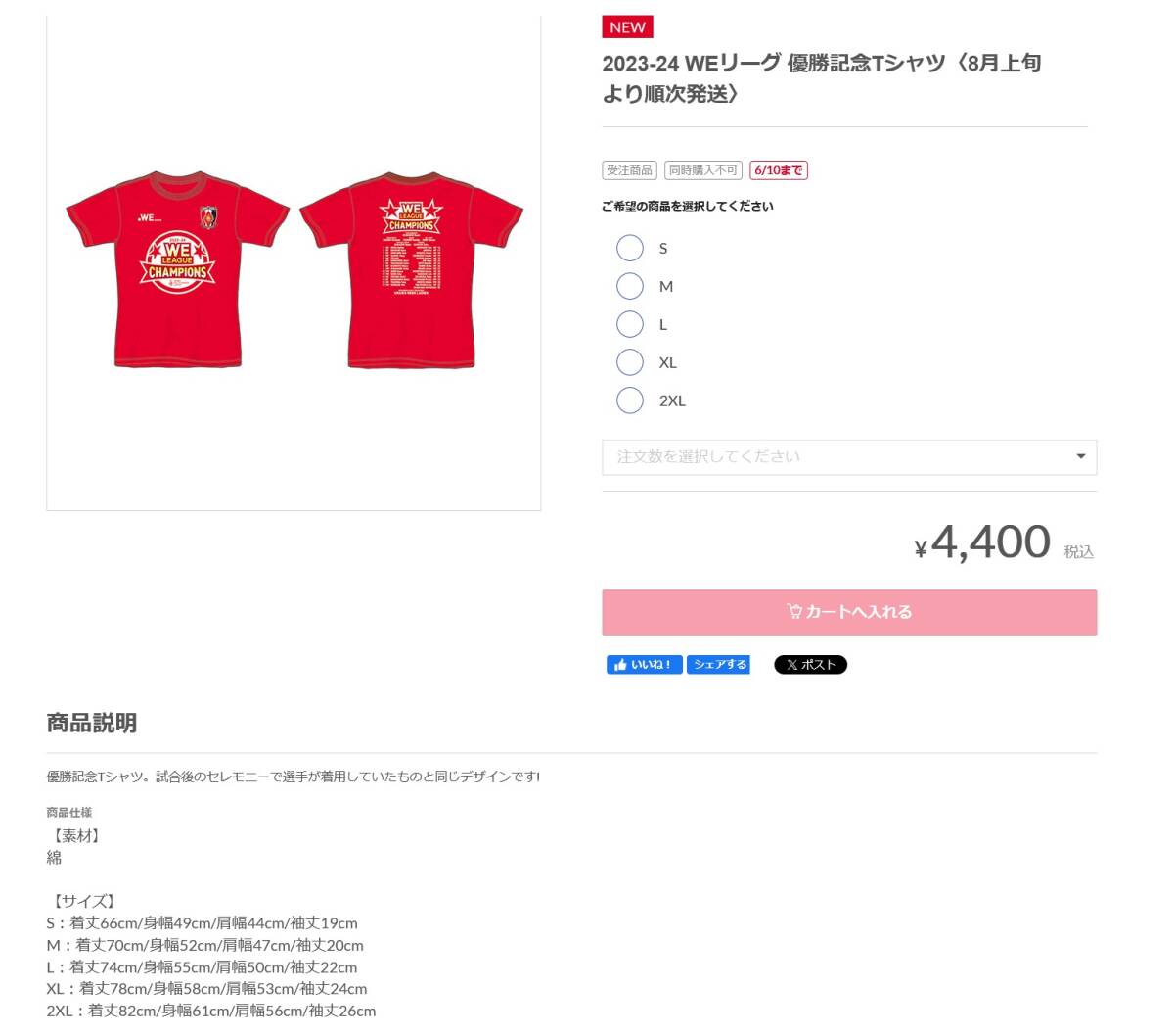 完全受注生産 未開封【即決・送料無料】浦和レッズレディース 2023 / 2024 WEリーグ 優勝記念 Tシャツ L なでしこ 656-4