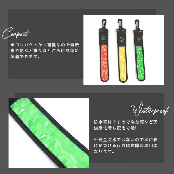 更に反射板がついていてLED発光・点滅するので、すぐに認識され安心して運転することができます。