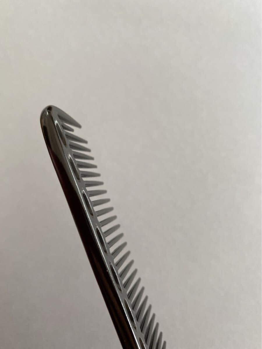 高品質のステンレス鋼を使用し、耐熱、抗菌、さらに静電気を帯びにくいメタルカットコーム(ロングタイプ)です。