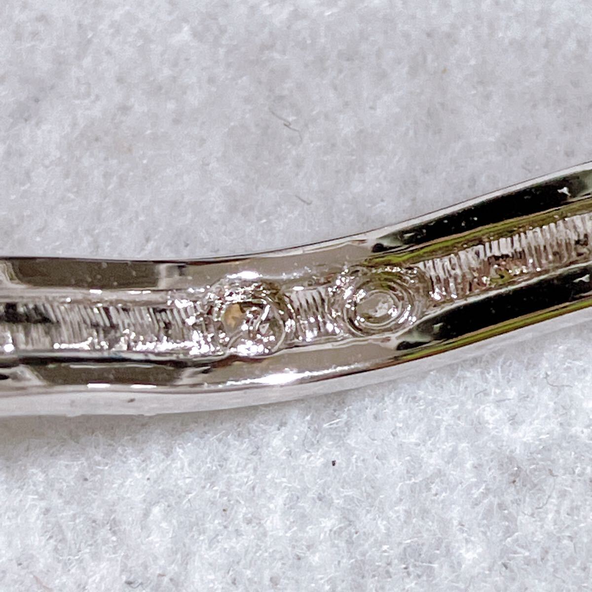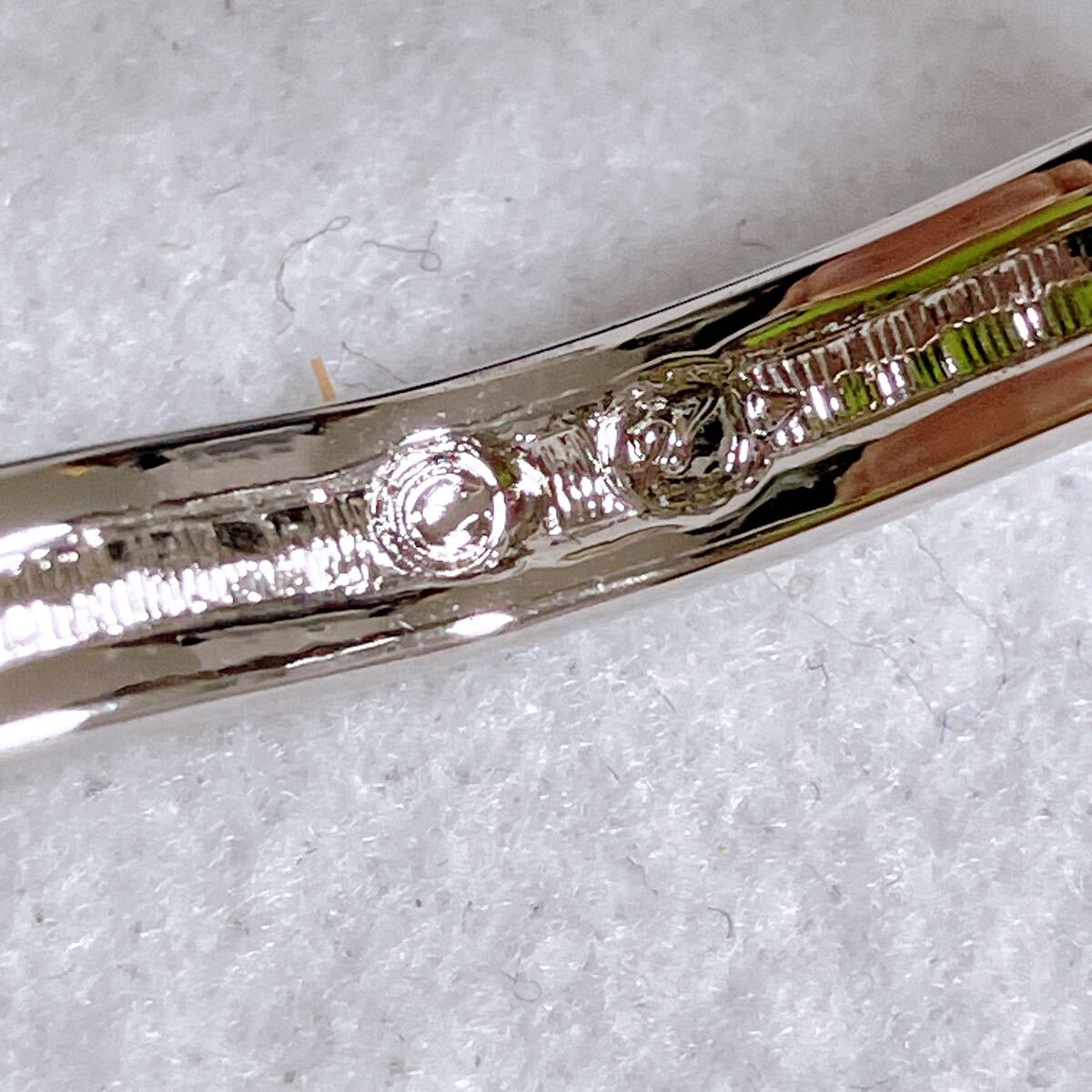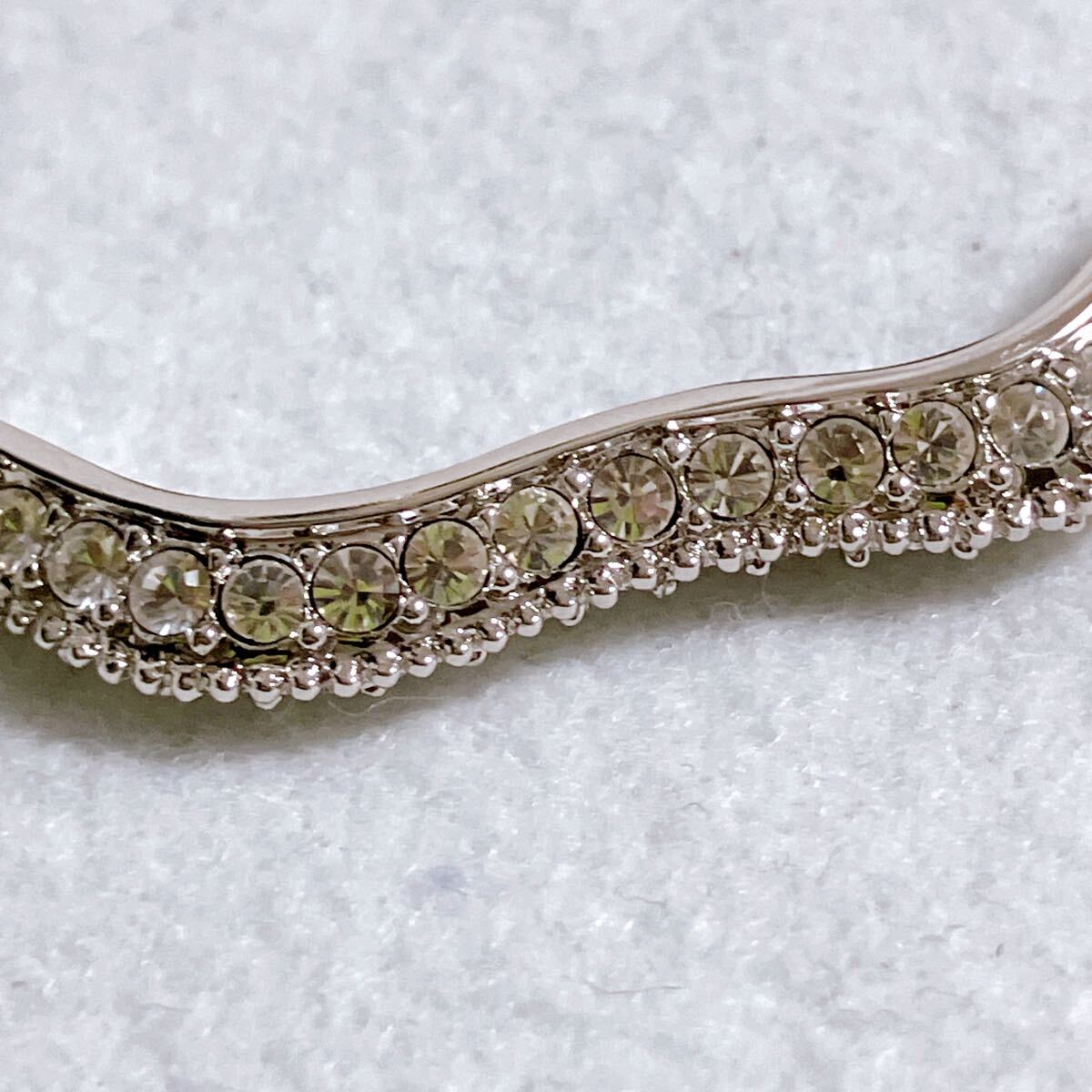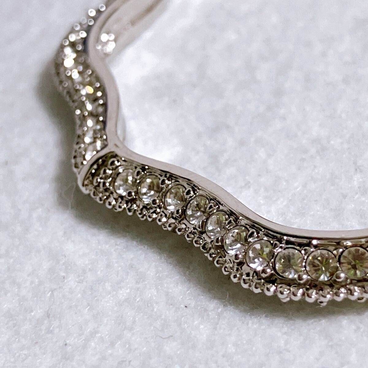波形デザインが特徴的で、シルバーの輝きが手元を美しく演出します。クリスタルの装飾が施されており、華やかさを加えています。