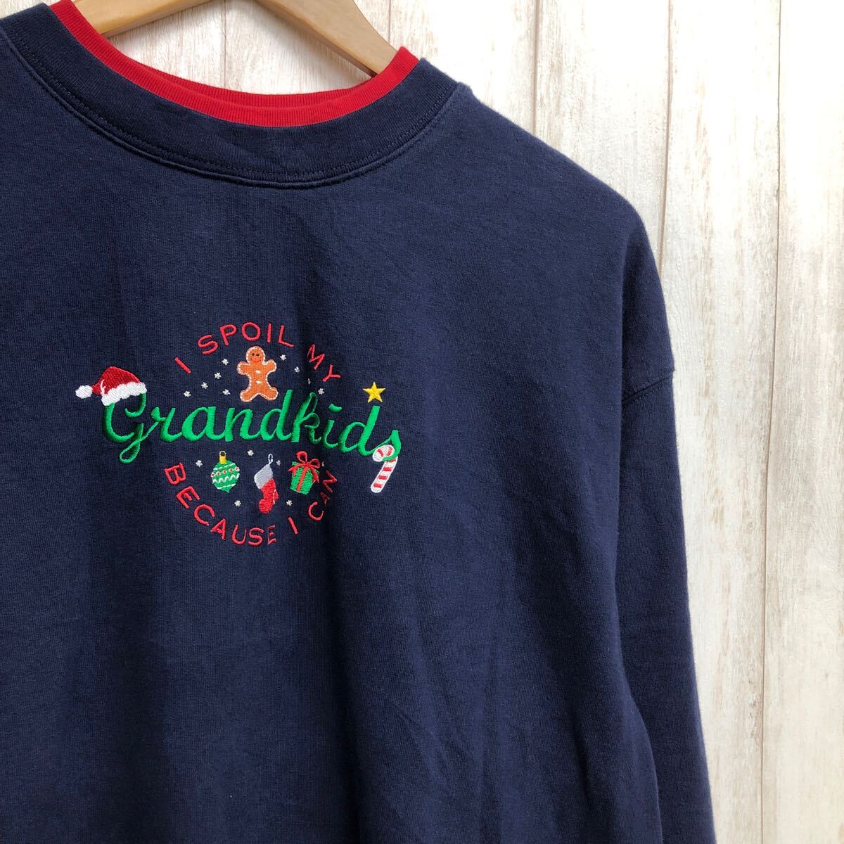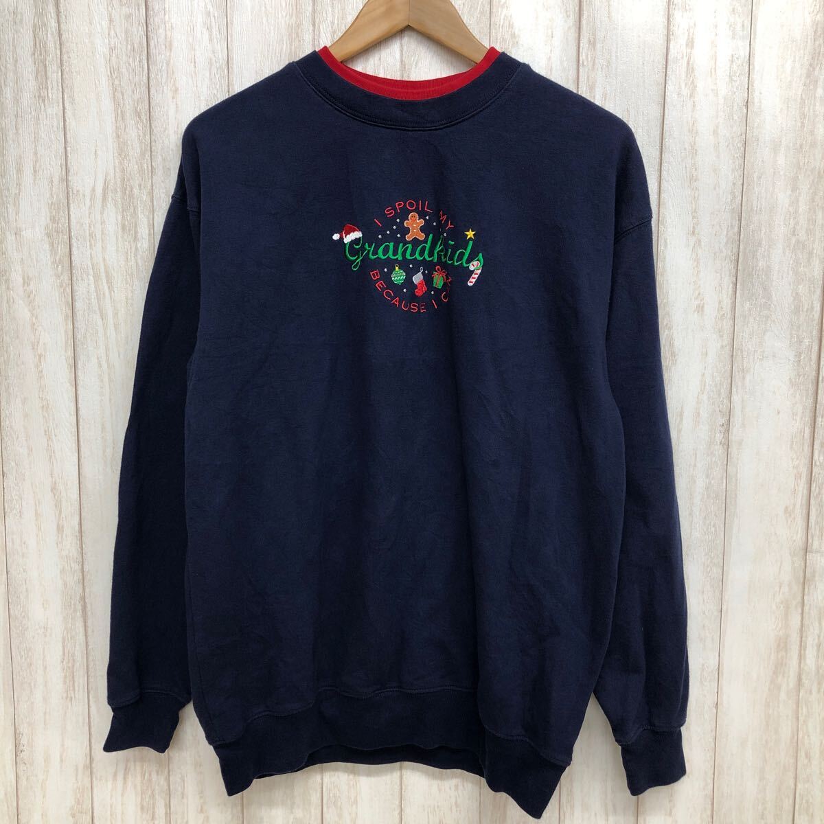 クリスマス スウェット Lサイズ トレーナー 刺繍 ヴィンテージ ネイビー メンズ YF79