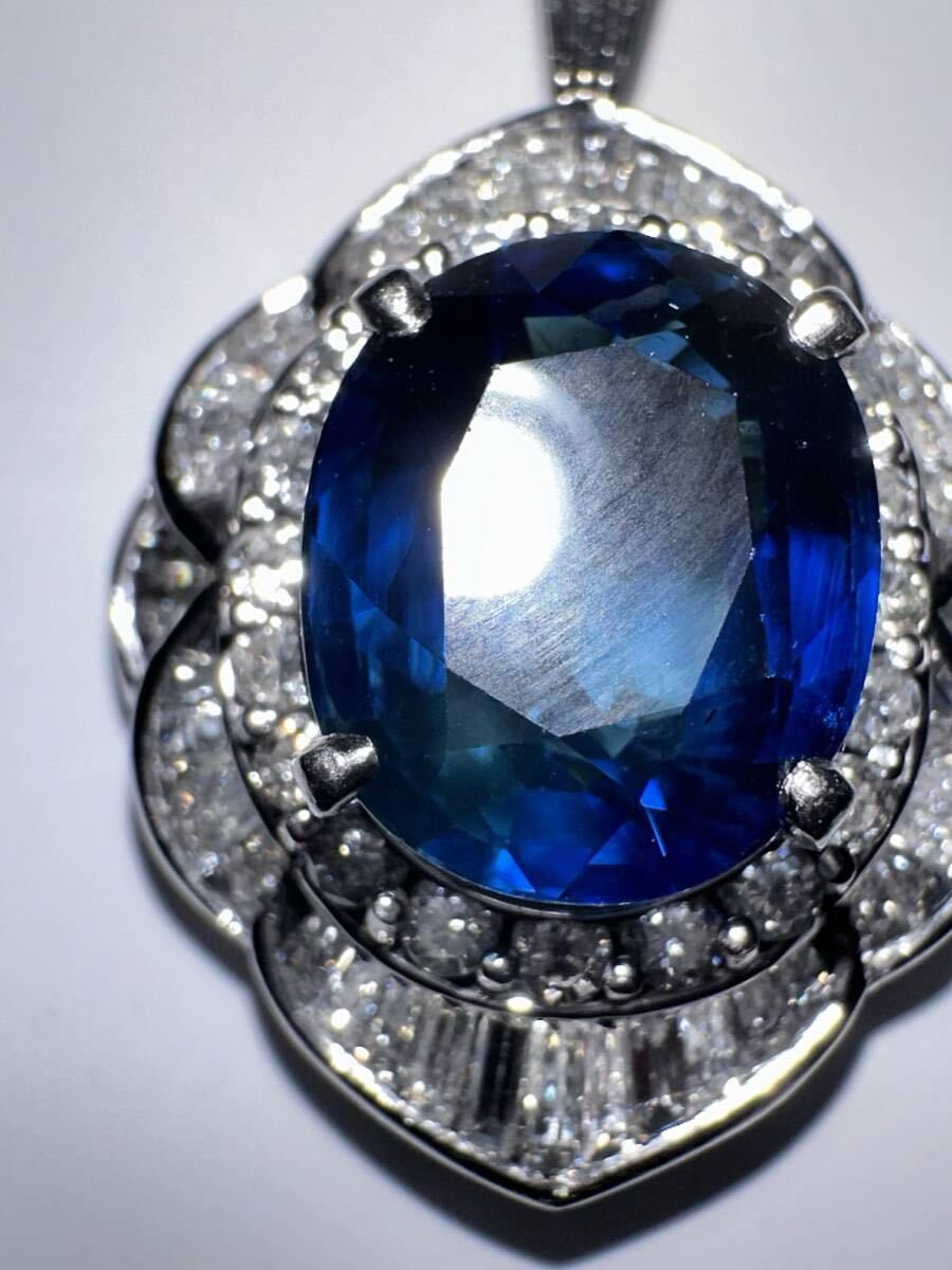 サイズは12.7重さ10.6縦幅6.7mmと吸い込まれそうな透明感のある鮮やかなブルーの煌めきが美しいサファイアダイヤモンドネックレスに視線が集まります。このようなものはほとんど市場に出回っておりません。胸元に素晴らしいオーラと存在感を与えてくれて愛を注がれることでしょう。新日本宝石鑑定鑑別協会の鑑別書付きです。