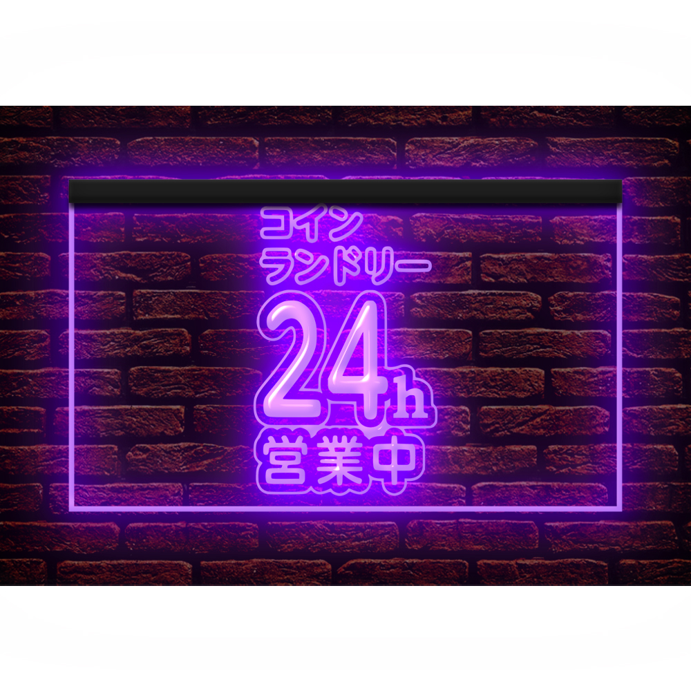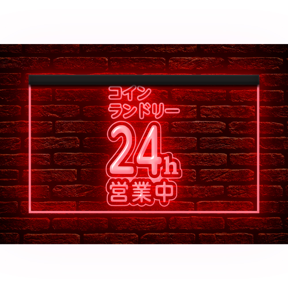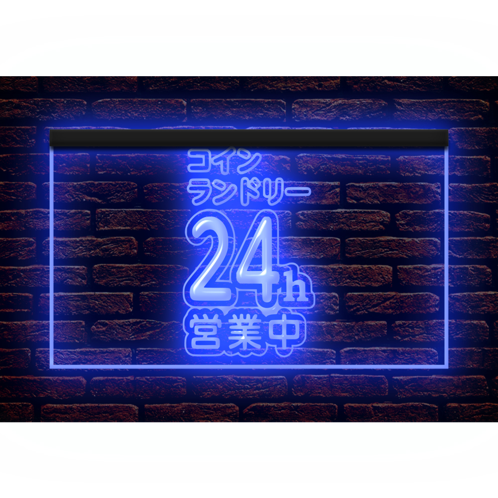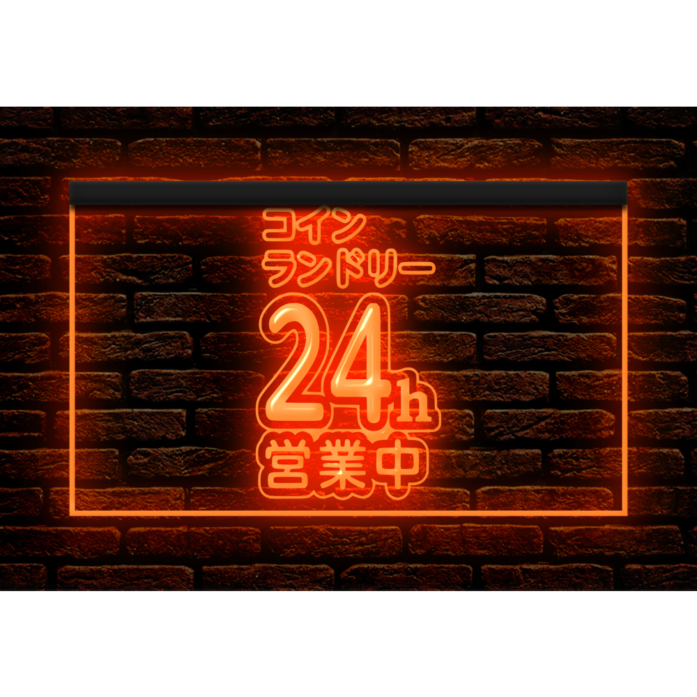 【オリジナルデザイン対応】260189 // LED ネオンサイン 24時間営業 コインランドリー 洗濯乾燥 年中無休■サイズ(約):W300mm x H200mm