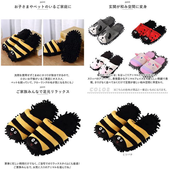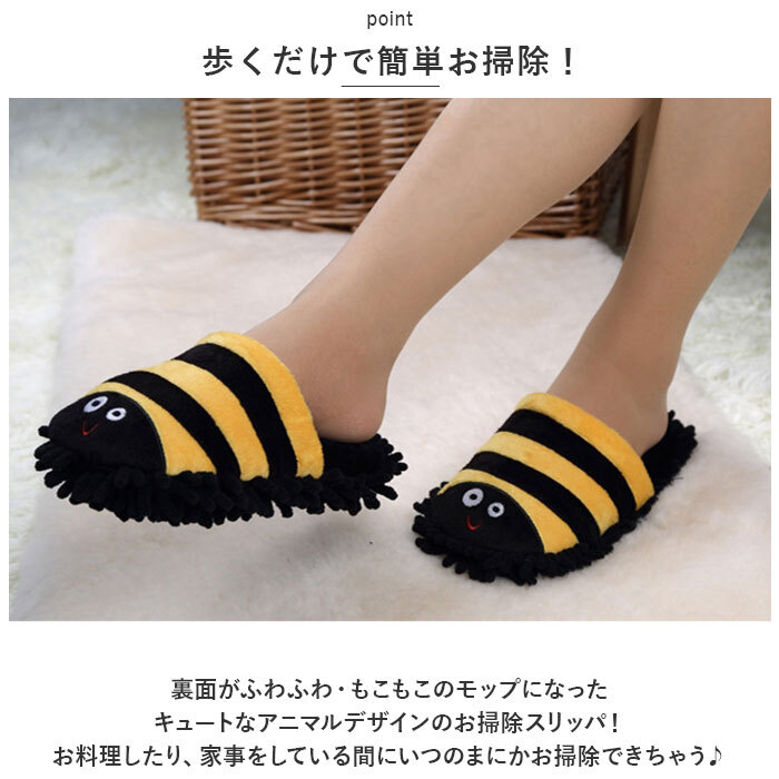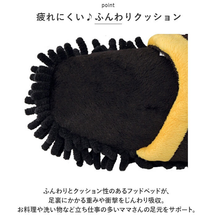 | 商品説明 | ・・ふわふわアニマルに足元包まれながら、お部屋をピカピカお掃除♪スリッパを履いているだけでお掃除ができちゃう「アニマル・モップスリッパ」が新登場。 ・【歩くだけで簡単お掃除!】 ・裏面がふわふわ・もこもこのモップになったキュートなアニマルデザインのお掃除スリッパ!お料理したり、家事をしている間にいつのまにかお掃除できちゃう♪ ・【マイクロファイバーで簡単キレイ】 ・お掃除用モップと同じ、柔らかなマイクロファイバー繊維の“ふさ”が、小さなホコリや髪の毛も逃さずキャッチ!履いているだけで、隅々までパッとお掃除! ・【疲れにくい♪ふんわりクッション】 ・ふんわりとクッション性のあるフッドベッドが、足裏にかかる重みや衝撃をじんわり吸収。お料理や洗い物など立ち仕事の多いママさんの足元をサポート。 ・【素足で履いても快適】 ・フッドベッドも、足の甲に当たるスリッパ内側も滑らかな起毛生地で仕上げ、素足で履いても、優しく包み込まれるような心地よさ。 ・【お子さまやペットのいるご家庭に】 ・洗剤を使用せずこまめにホコリが除去できるので、小さいお子様がいるご家庭にオススメ。ペットを飼っていて、フローリングの毛が気になる方にも♪ ・【玄関が和み空間に変身】 ・毎日の「ただいま」をほっこりアニマルたちがお出迎え!スリッパのアッパーに、表情豊かなアニマルフェイスを可愛らしい刺繍で表現。さりげなく並べておくだけで玄関が優しい和み空間に早変わり。 ・【ご家族みんなで足元リラックス】 ・家事に忙しい時間だけでなく、ご自宅でのリラックスタイムにも最適!ご家族みんなで、お気に入りのアニマルを選んでね♪ |