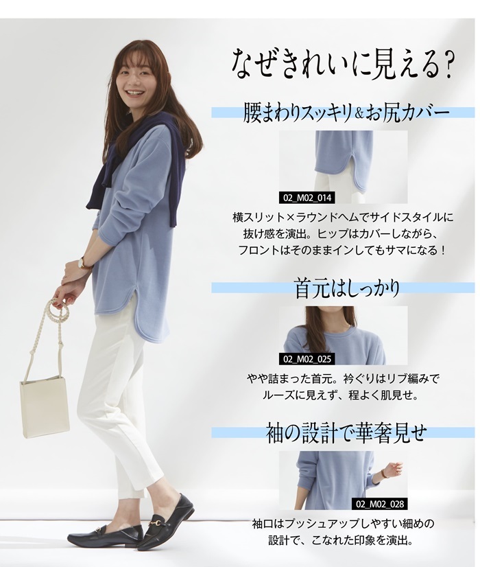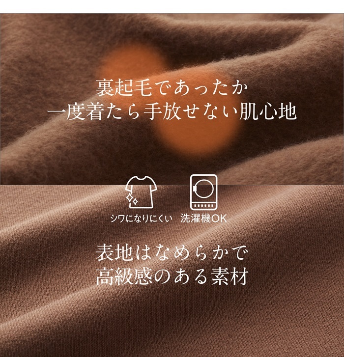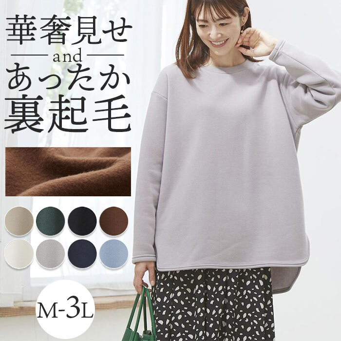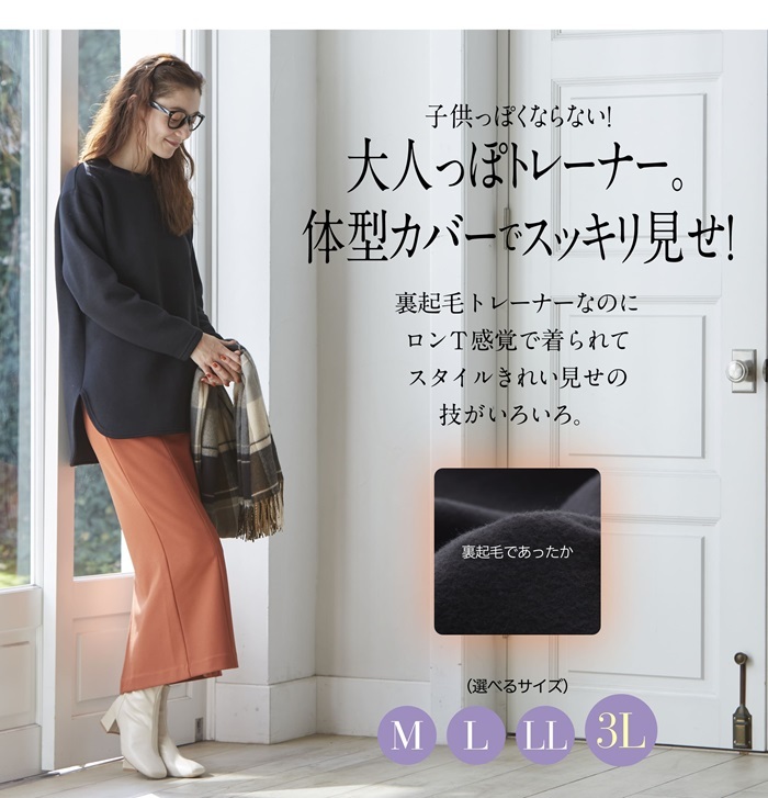 商品説明 | ・・ラインを拾わず体型カバー!&あったか裏起毛 ・子供っぽくならない!大人っぽいトレーナー。体型カバーでスッキリ見せ! ・裏起毛トレーナーなのにロンT感覚で着られてスタイルきれい見せの技がいろいろ。 ・裏起毛であったか一度着たら手放せない肌心地 ・表地はなめらかで高級感のある素材。 |