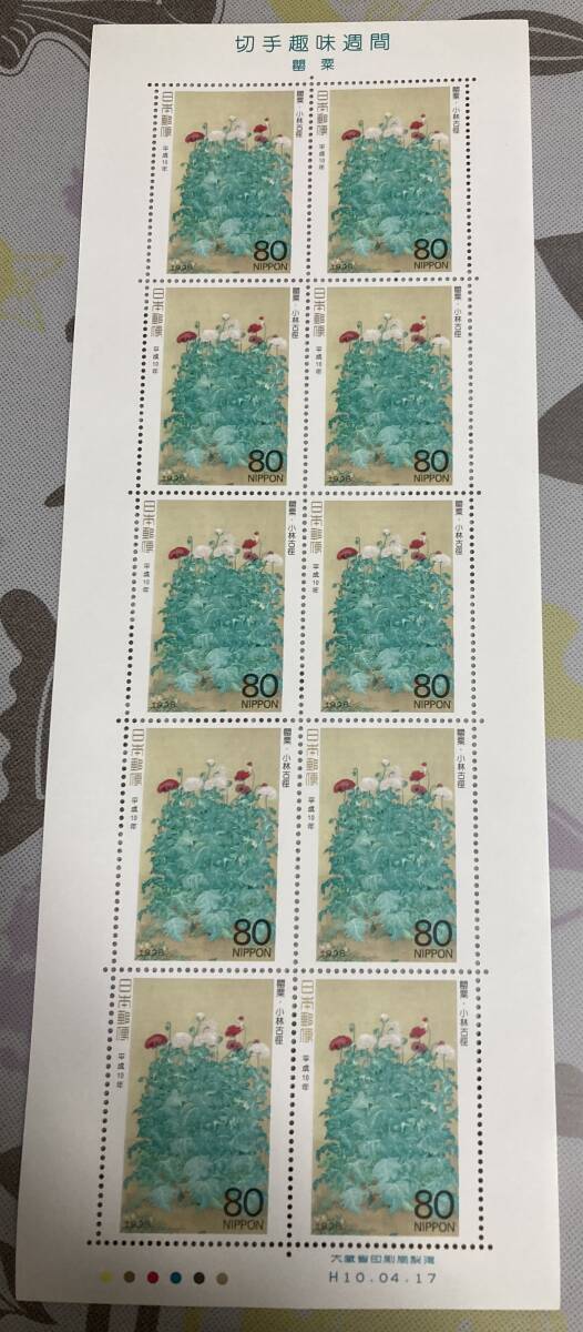 ☆未使用☆切手趣味週間 小林古径(罌粟)☆平成10年4月 80円×10