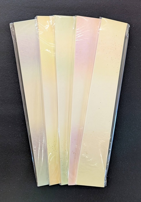新鳥の子製の3色ボカシ砂子入り料紙を台紙に貼った、高級感のある歌用短冊です。