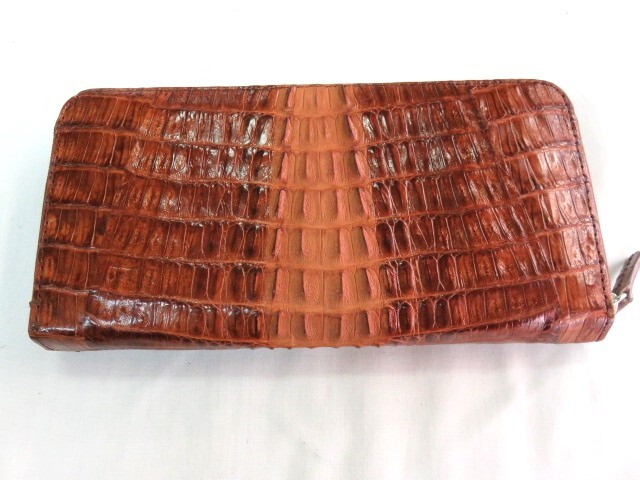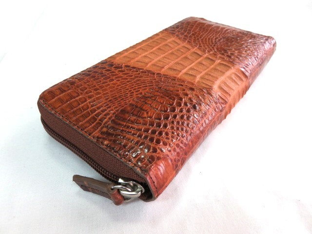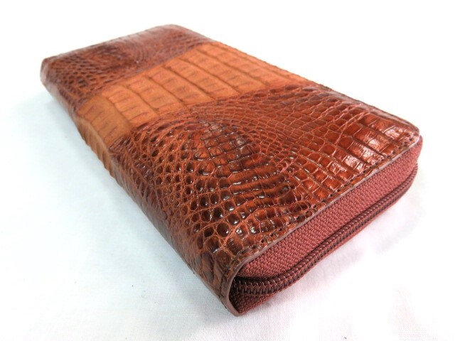 KC 新品 高級 本物 クロコダイル 背わに ラウンドファスナー 長財布 ブラウン 茶色 メンズ 男性用 レザー
