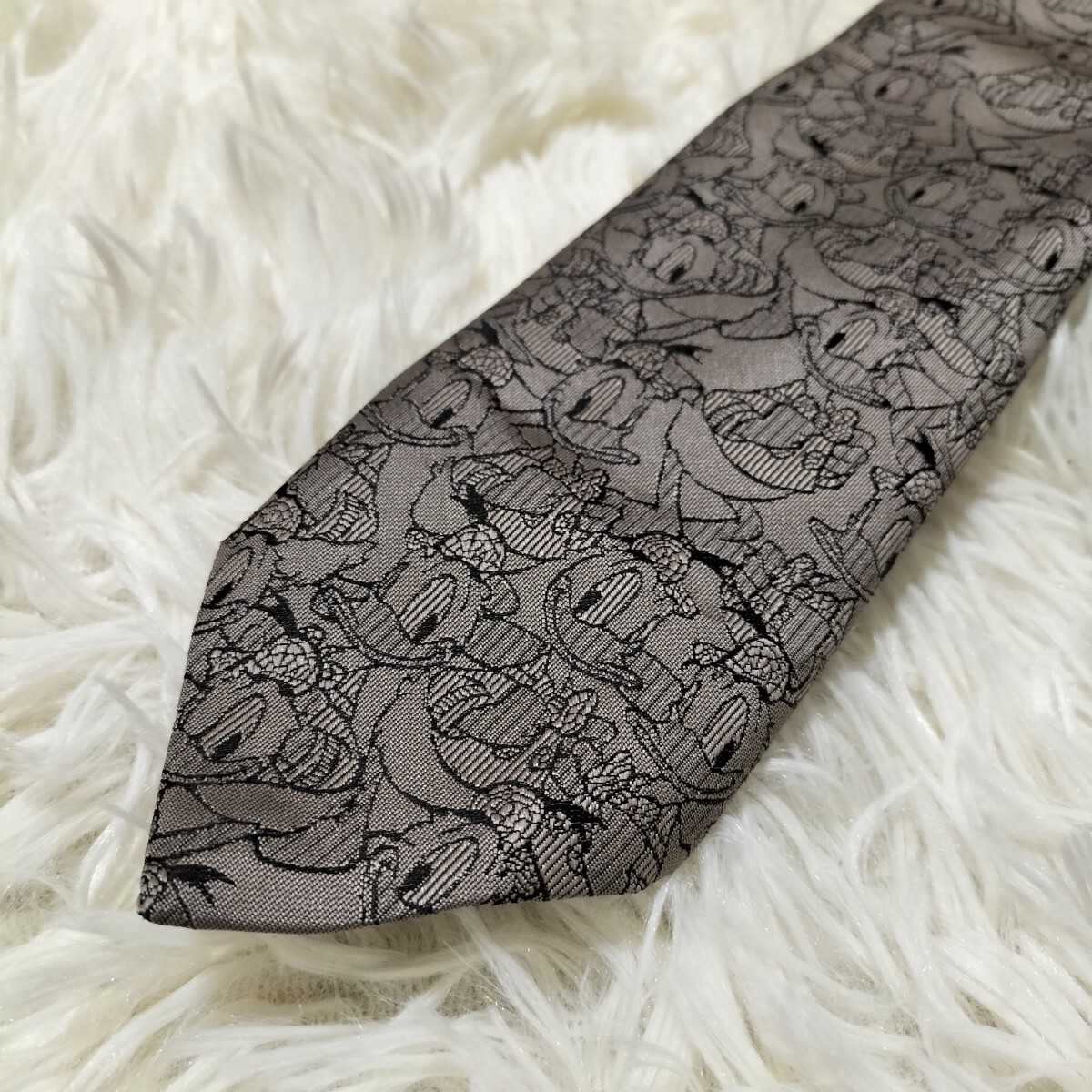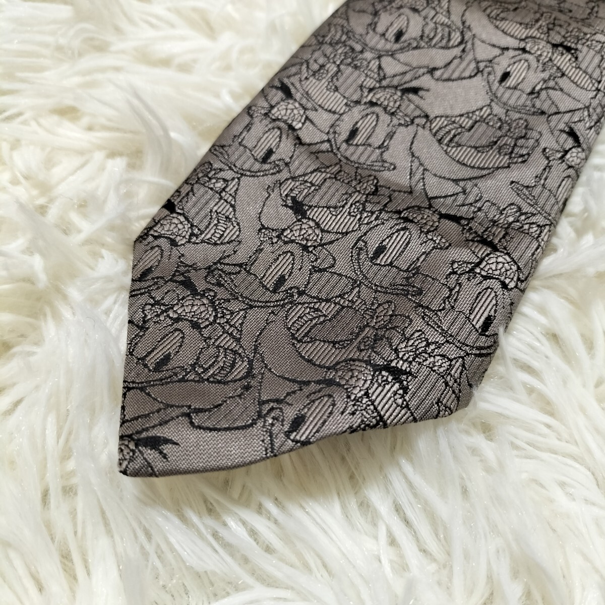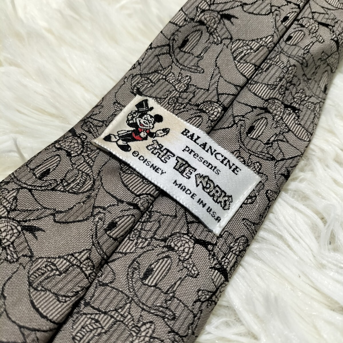 希少★USA製 DISNEY THE TIE WORKS ディズニー ネクタイ ドナルド 総柄 グレー系ベース ヴィンテージ オールド 古着 USED