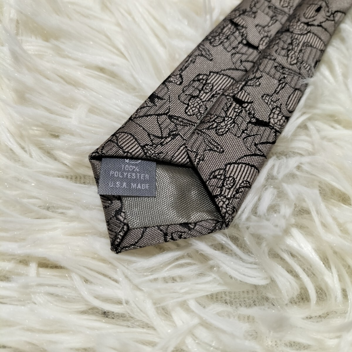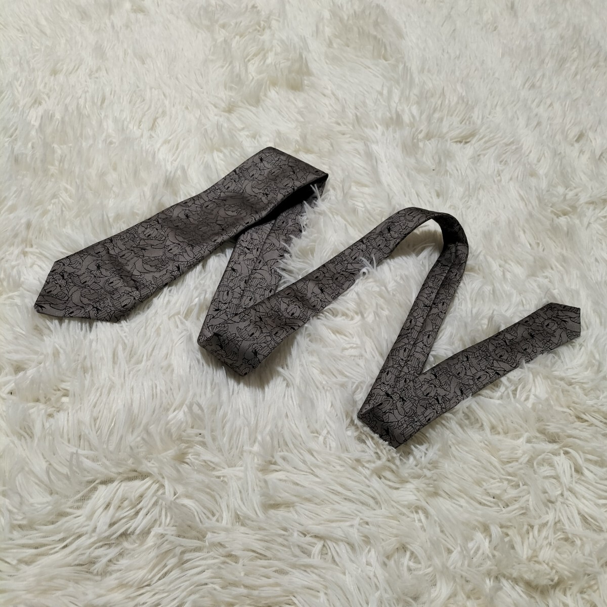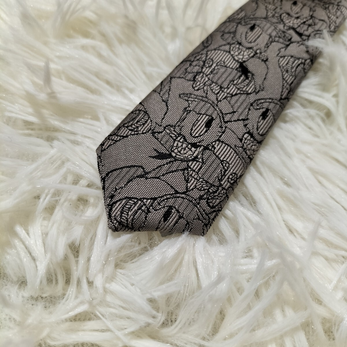 希少★USA製 DISNEY THE TIE WORKS ディズニー ネクタイ ドナルド 総柄 グレー系ベース ヴィンテージ オールド 古着 USED