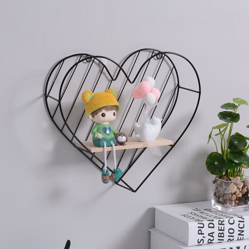 ハートの飾り棚●ウォールマウント インテリア フローティング 棚 ブラックメタル 壁付け 収納 北欧雑貨 シック シンプル かわいいDJ1547