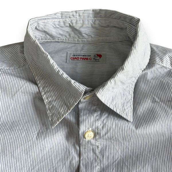 日本製 CIAOPANIC チャオパニック 長袖 ストライプ コットン シャツ レギュラーカラー トップス ロングスリーブ カジュアル F ホワイト