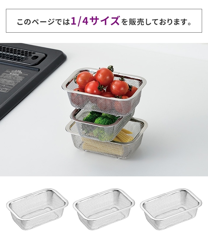 燕熟の技 ユニット ザル 1/4サイズ 3個組 日本製 ステンレス製 キッチン用品 料理用 食品用 小型ザル 収納便利 調理器具 ステンレスザル 角型 ざる キッチンザル ユニットザル 水きり 省スペース 耐久性 衛生的 錆びにくい 調理器具 キッチンツール 便利グッズ キッチン雑貨 台所 調理グッズ