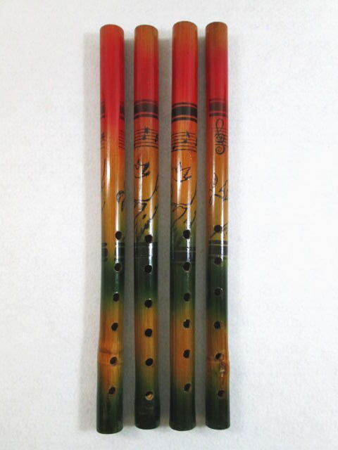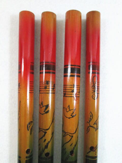 (商品名) 【竹笛 縦笛 鳥と音符の絵 4本セット】レトロ/おもちゃ