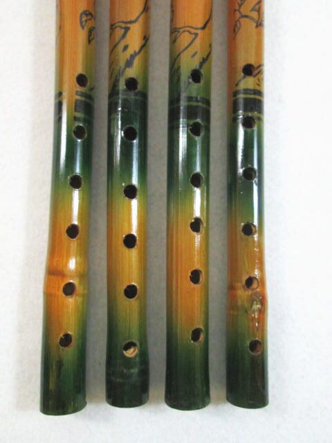 【竹笛 縦笛 鳥と音符の絵 4本セット】レトロ/おもちゃ