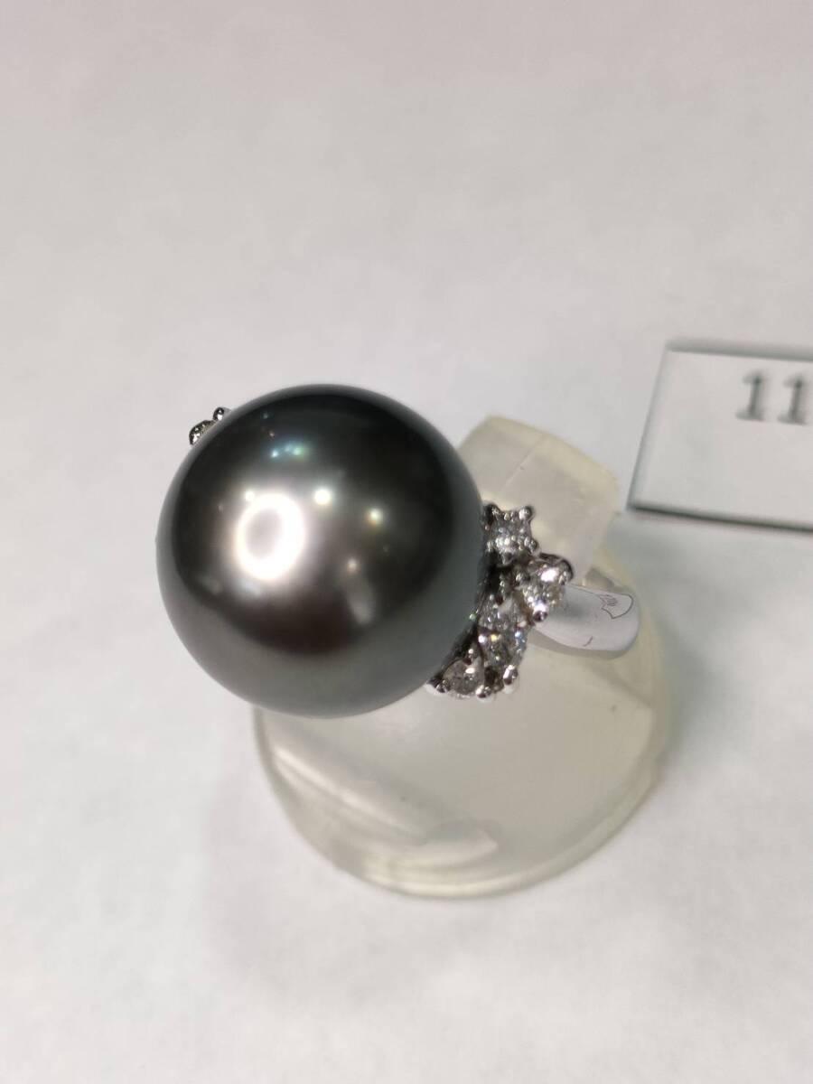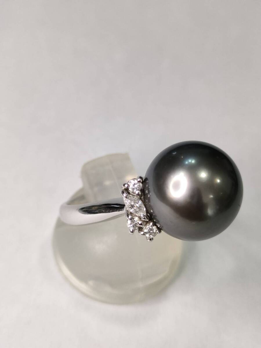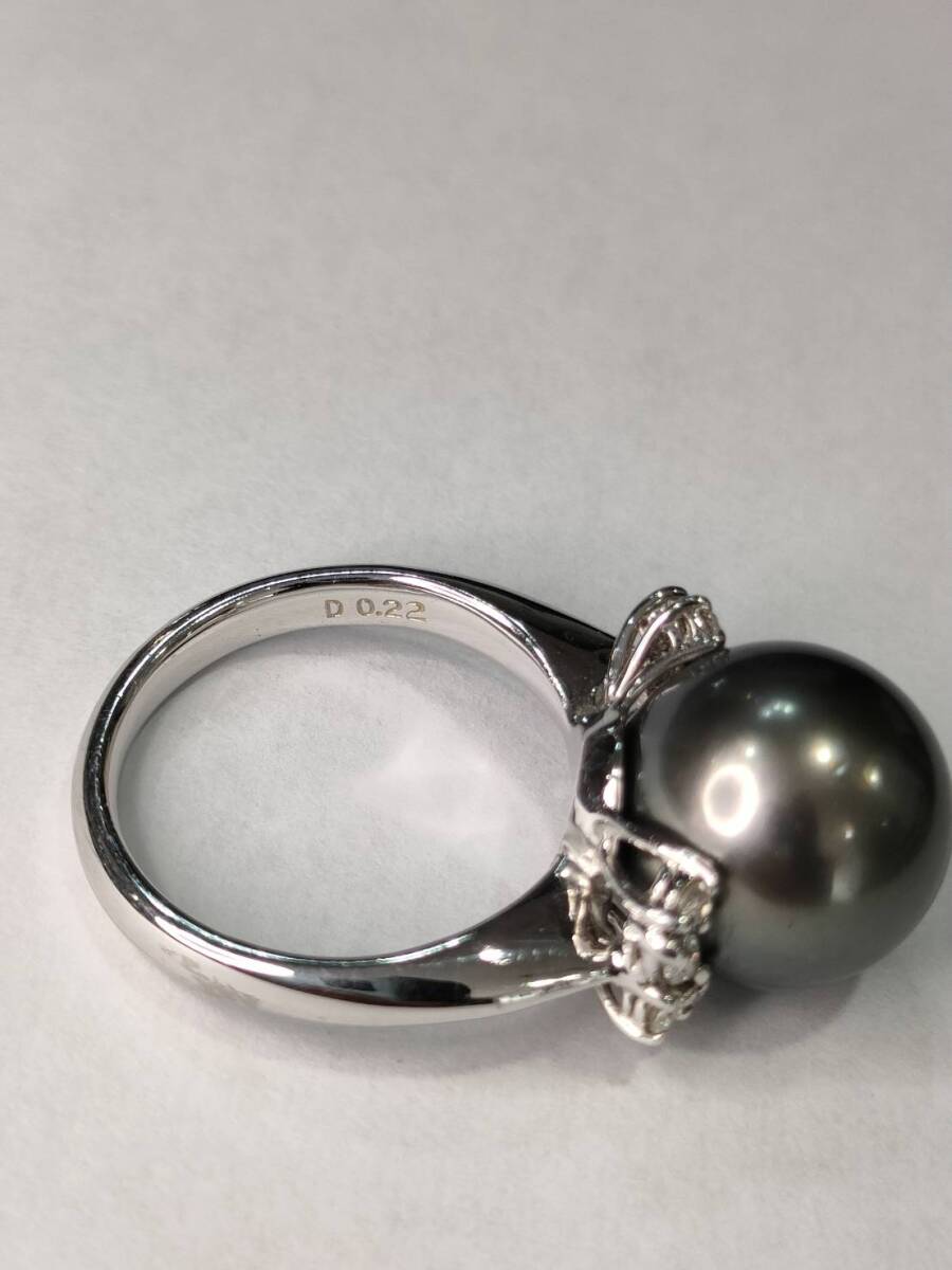 a1008 pt900 南洋パールリング ダイヤモンド0.22ct パール直径約12.6mm リングサイズ#11 鑑別書あり