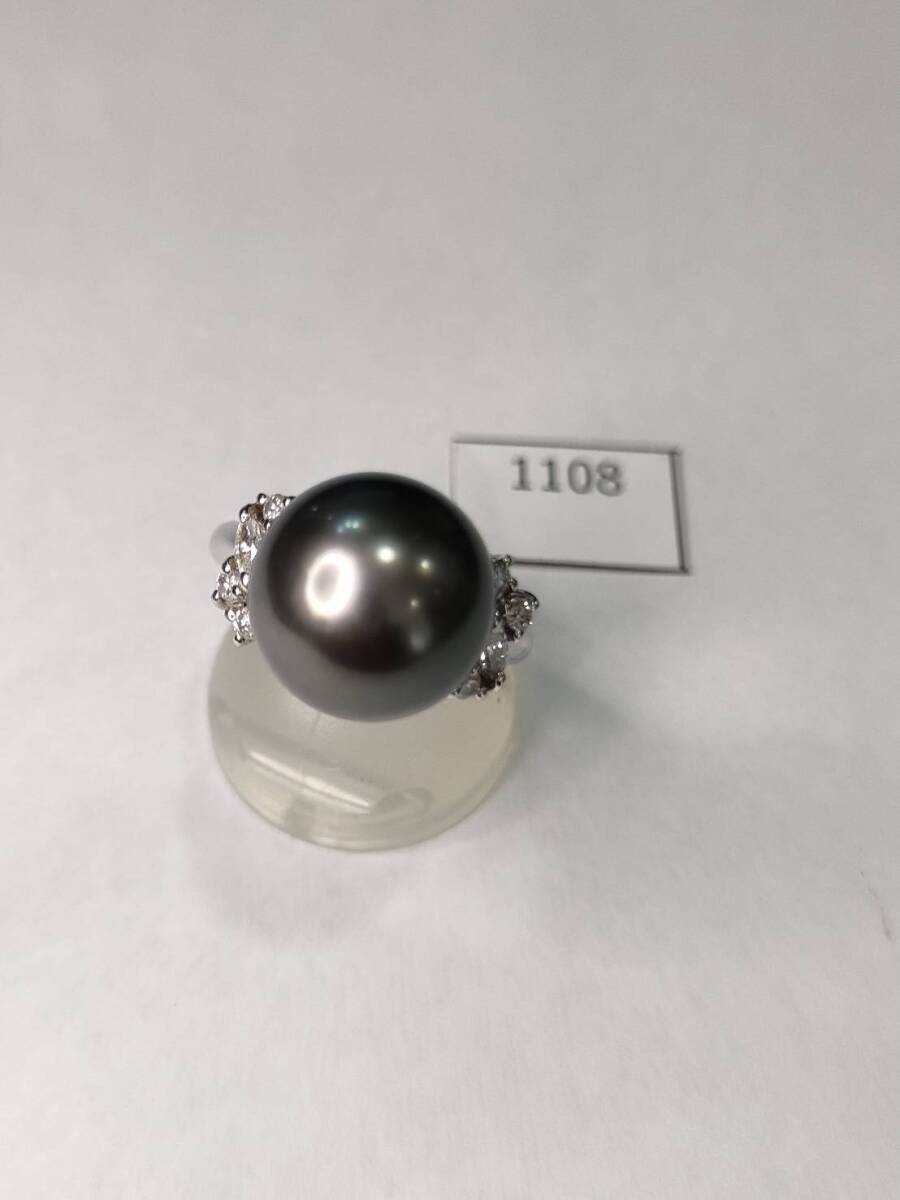 a1008 pt900 南洋パールリング ダイヤモンド0.22ct パール直径約12.6mm リングサイズ#11 鑑別書あり