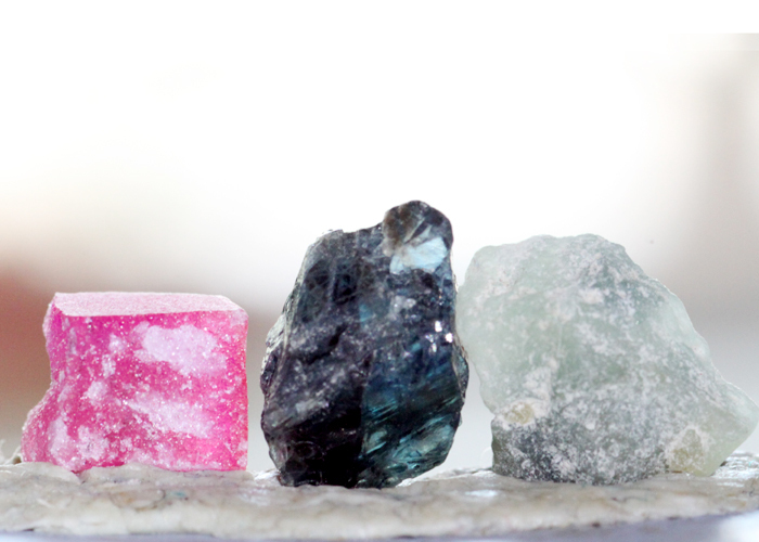 | 天然グランディディエライト、ピンクサファイア、ブルーサファイア原石セット | |||||