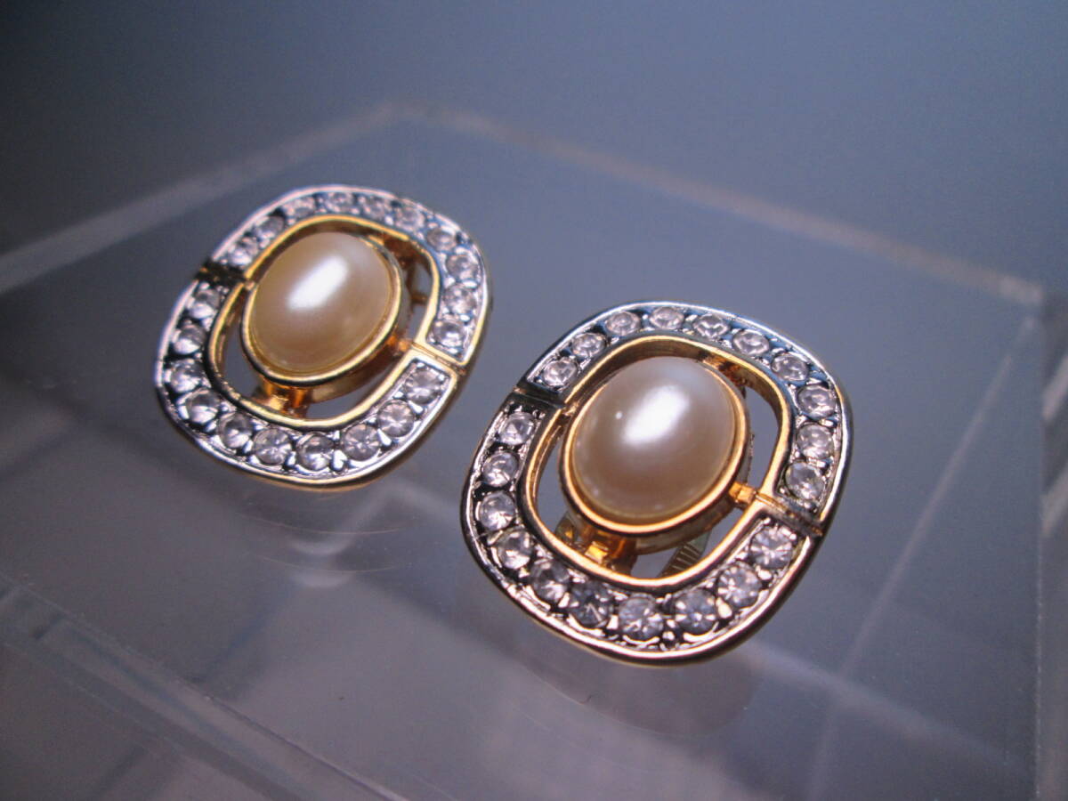 ☆SHBERTE 本真珠ラインストーンイヤリング 共ケース付 アクセサリー