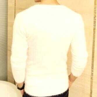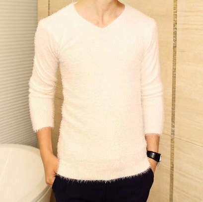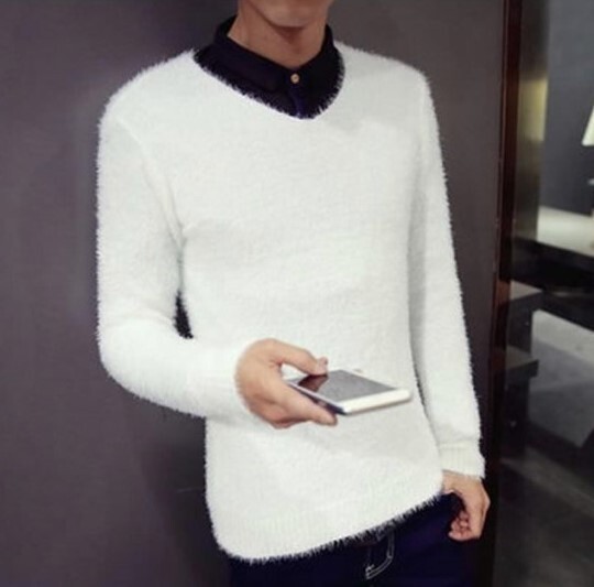 【L】白 モヘア風 セーター メンズ おしゃれ トップス 人気 冬 春 秋 思わず触りたくなる触り心地抜群 ニット Vネック ホワイト 無地