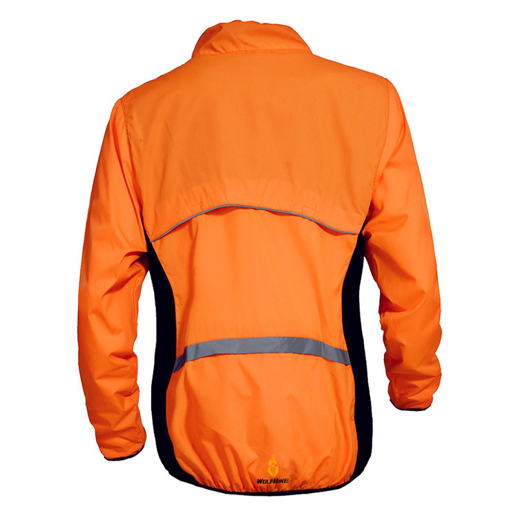 サイクルジャケット メンズ ジャージ ウェア防風男女兼用 レディース自転車収納可サイクリング ウインドブレーカ日焼け撥水 オレンジDJ163