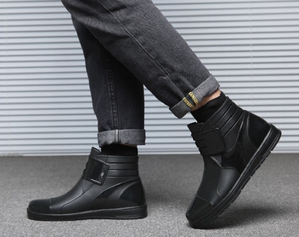 お洒落な雨靴をお探しの方、雨の日のファッションが悩みの種だった方に 特におすすめのレインシューズです。 ヒール(かかと高)は歩きやすい約2cm。履き口はベルクロになっており 太さを調節できます。 シンプルなデザインですので、スーツやカジュアル、制服など服装を 選びません。年齢も10代~シニアの男性まで幅広く着用いただけます。 アウトソール(靴裏)には滑り止め・耐摩耗の滑り止めが施され、 滑りやすい悪路も安心して歩けます。 |