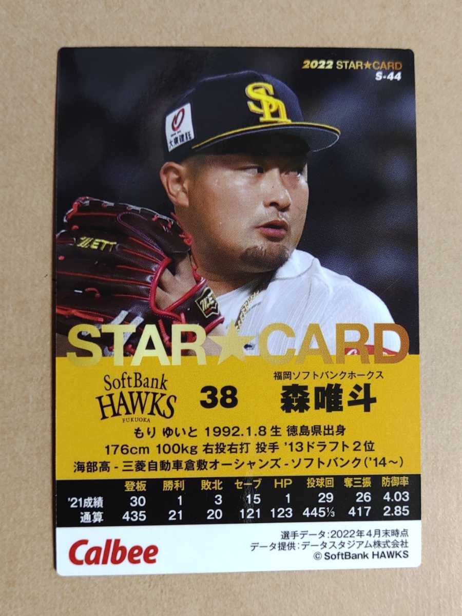 カルビー プロ野球チップス 2022 スターカード 金サイン 森唯斗(ソフトバンク) S-44