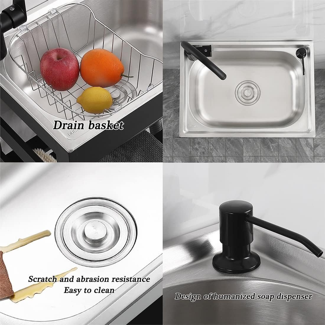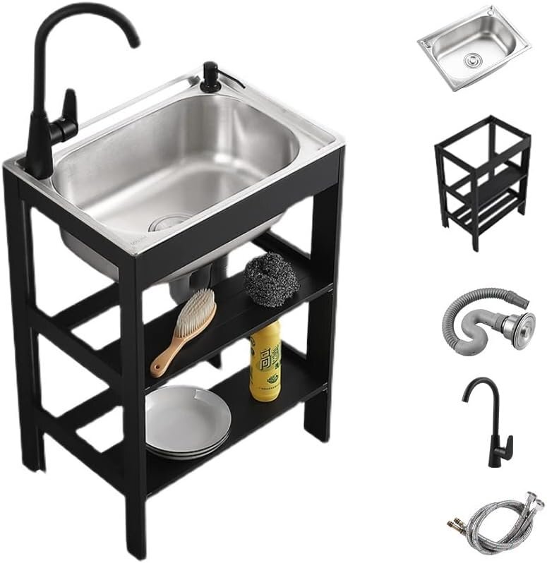 幅広い用途:ステンレス製のシンクには結露防止コーティングとEV遮音パッドが底部に装備されており、水の流れの騒音を排除し、結露水を隔離します。屋外および屋内での使用に最適で、ホテル、レストラン、ランドリールーム、ガレージに適しています、キャンプ、倉庫など