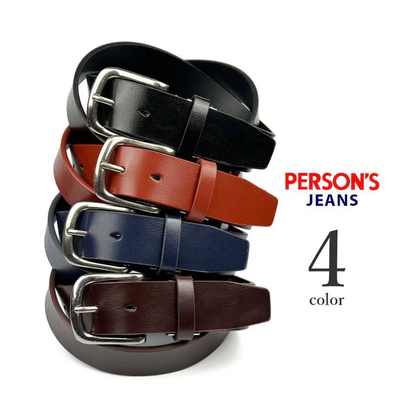 全4色 PERSONS JEANS パーソンズ リアルレザー プレーンベルト 牛革