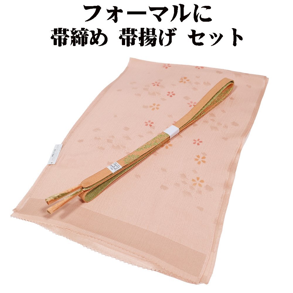 | 訪問着用 高麗帯締めと友禅帯揚げのセット 新品 帯揚げ サーモンピンク地桜柄 帯締め 手組紐 平 サーモンピンクに金糸の編み 新品 |