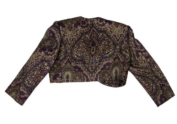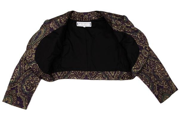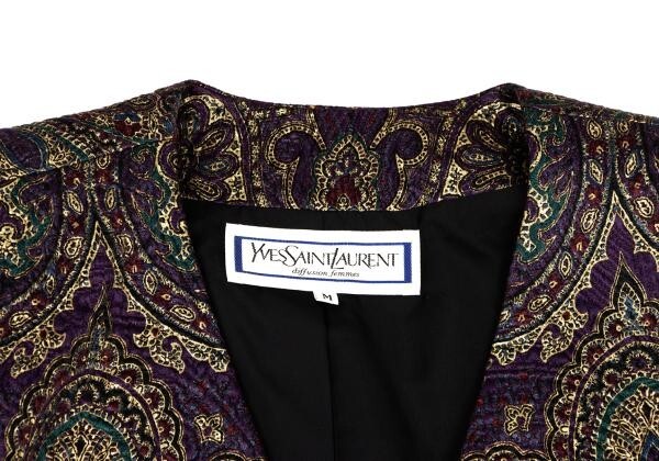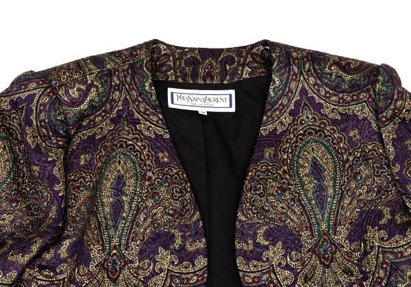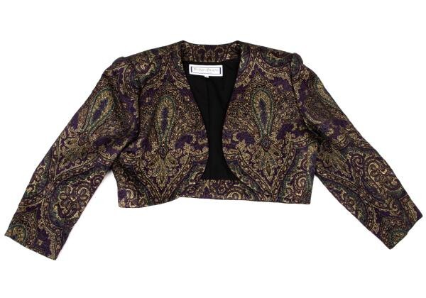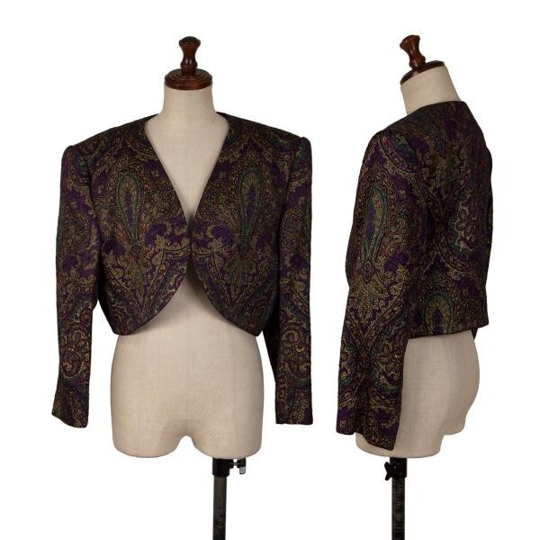 イヴサンローランYves Saint Laurent イヴサンローランYves Saint Laurent デザイン織りエスニックショートジャケット 紫緑赤M |
