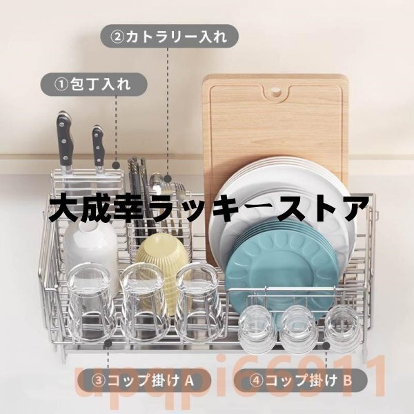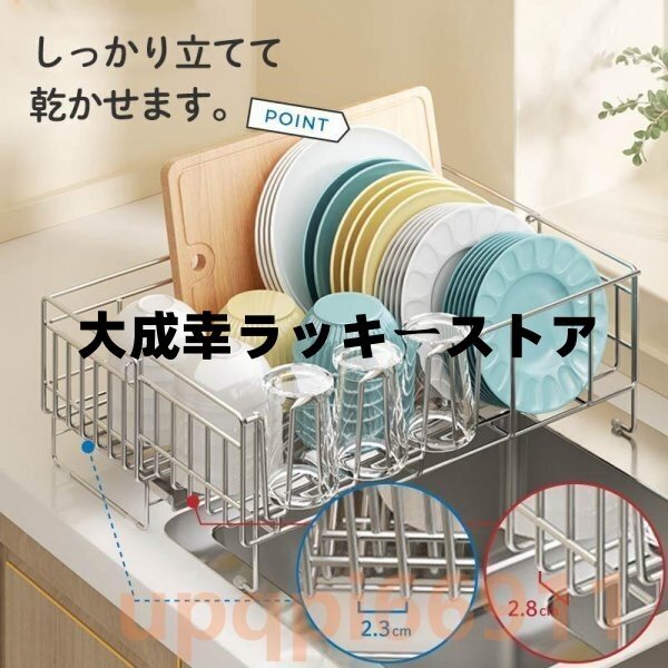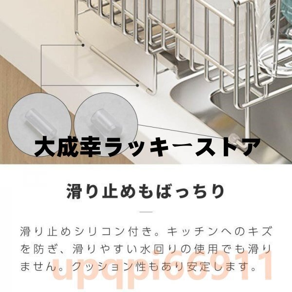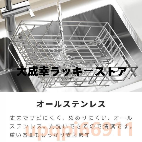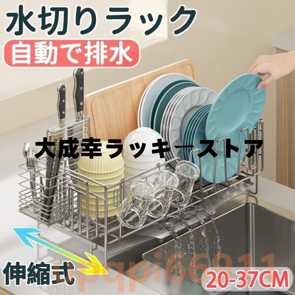 水切り 水切りラック 調整可能 ステンレス 水切りかご 大容量 横置 流れる キッチン 台所収納 収納 棚 おしゃれ 箸置き付き 収納ラック
