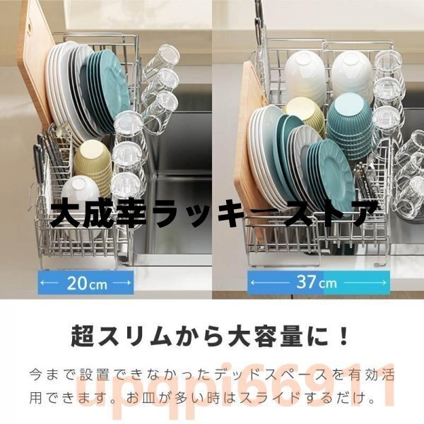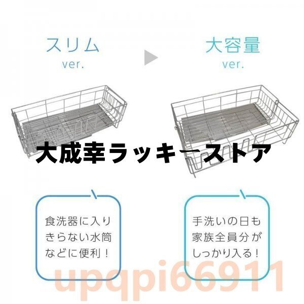 水切りラック シンク上 ステンレス 伸縮 大容量 スリム ワイド 水切りかご 水切りカゴ 排水 食器 水切り 包丁立て 箸立て洗い物の量や置く場所に応じて、奥行きを伸縮できる水切りラックです。