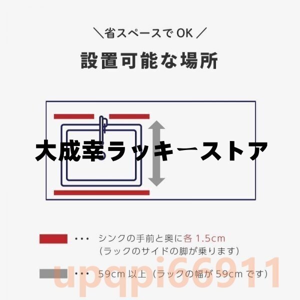シンクの手前と奥に、ラックのサイドの脚を乗せる1.5cmくらいの幅があればOKです。