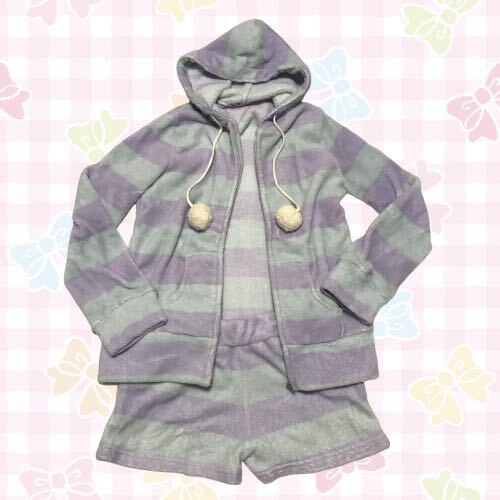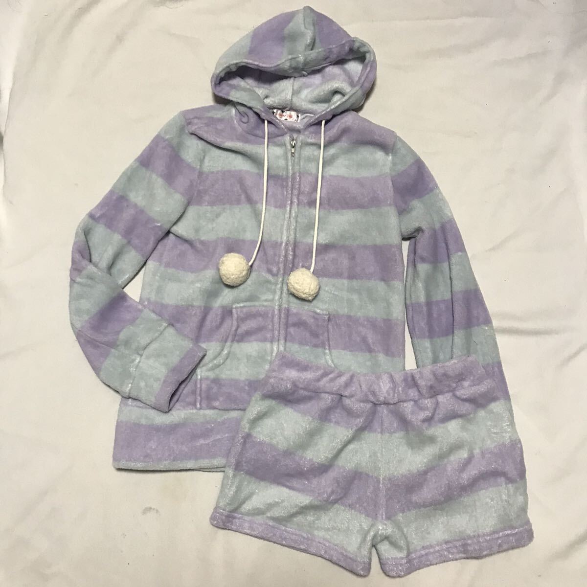 y2k フェアリーコア フェアリーグランジ グランジ ギャル 平成ギャル ファー フード パーカー ポンポン フリース アウター ショートパンツ レディース ボーダー