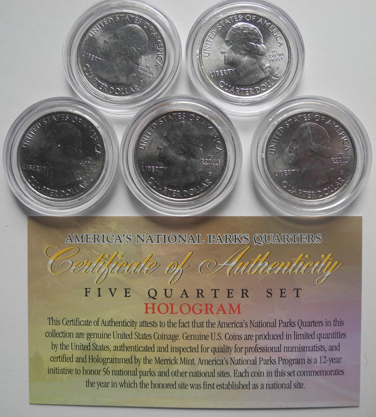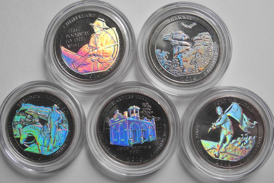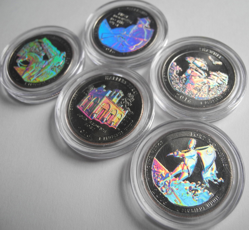 アメリカの限定1/4ドル硬貨、限定ホログラム仕様の5枚セットです。2016年発行。