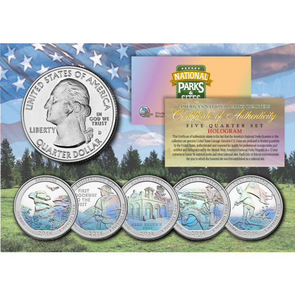 アメリカ 1/4ドル硬貨 限定ホログラム仕様 コイン 2016年5枚セット クォータダラー USA 証明書&コインホルダー付き 新品レア