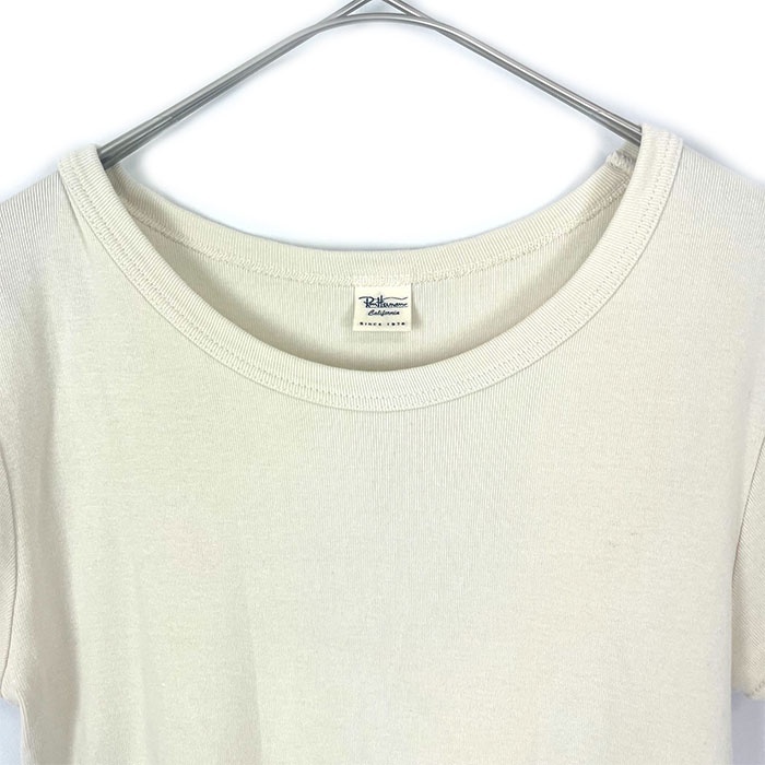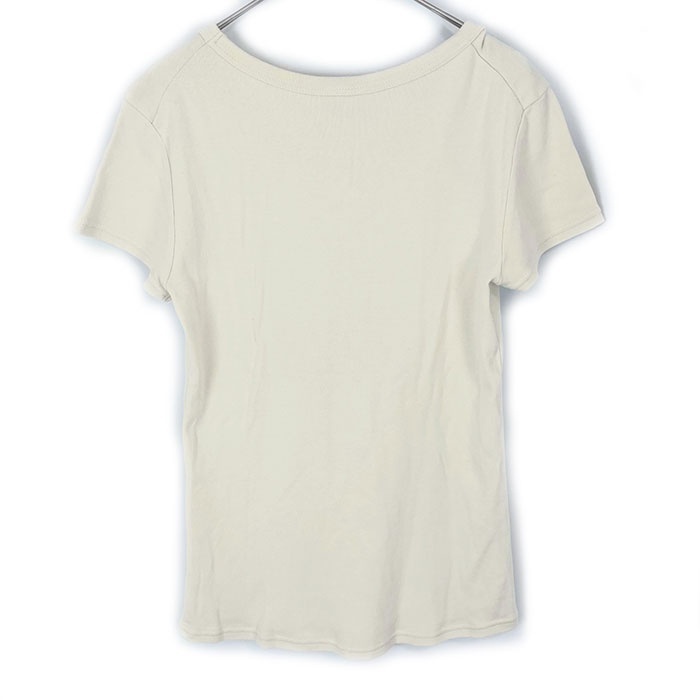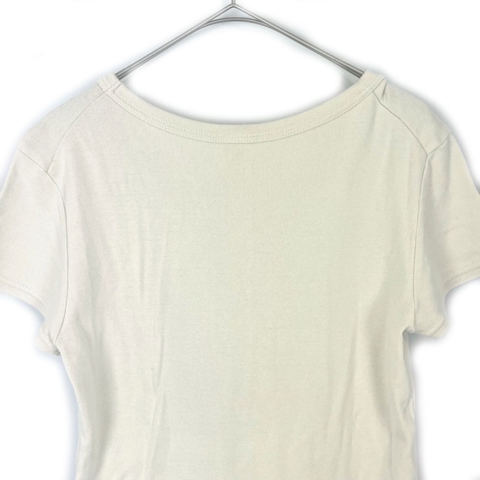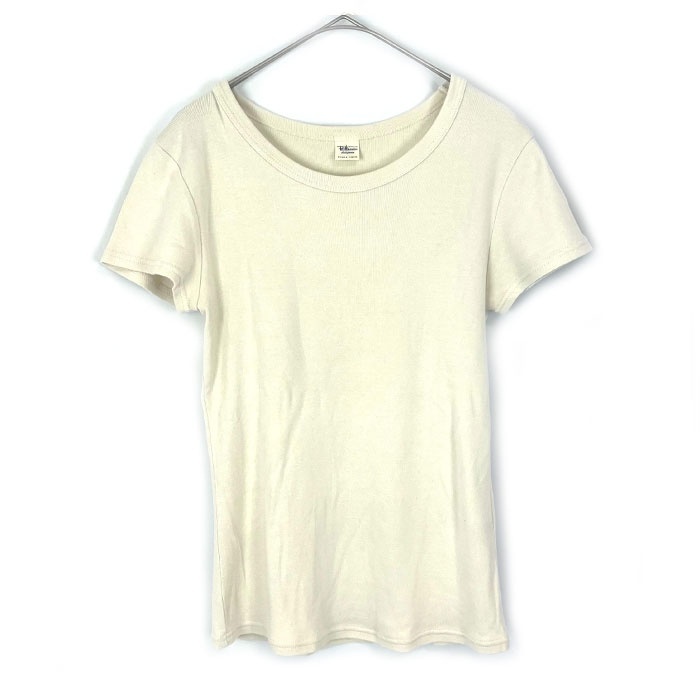 | 【コメント】 柔らかな肌触りのシンプルTシャツです。フィット感があり、綺麗なシルエット。毛羽立ちがありますが、気になる汚れはなく全体的に綺麗なお品物です。 |