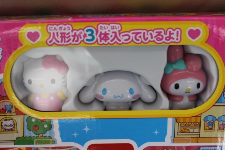 人気のキャラクター3体の人形とかわいい小物や家具が40個も入ったハウスセットです。 本体左側で【おうち遊び】、右側で【おみせ遊び】、プレイシートで【カフェ遊び】の3つの遊びが楽しめます。